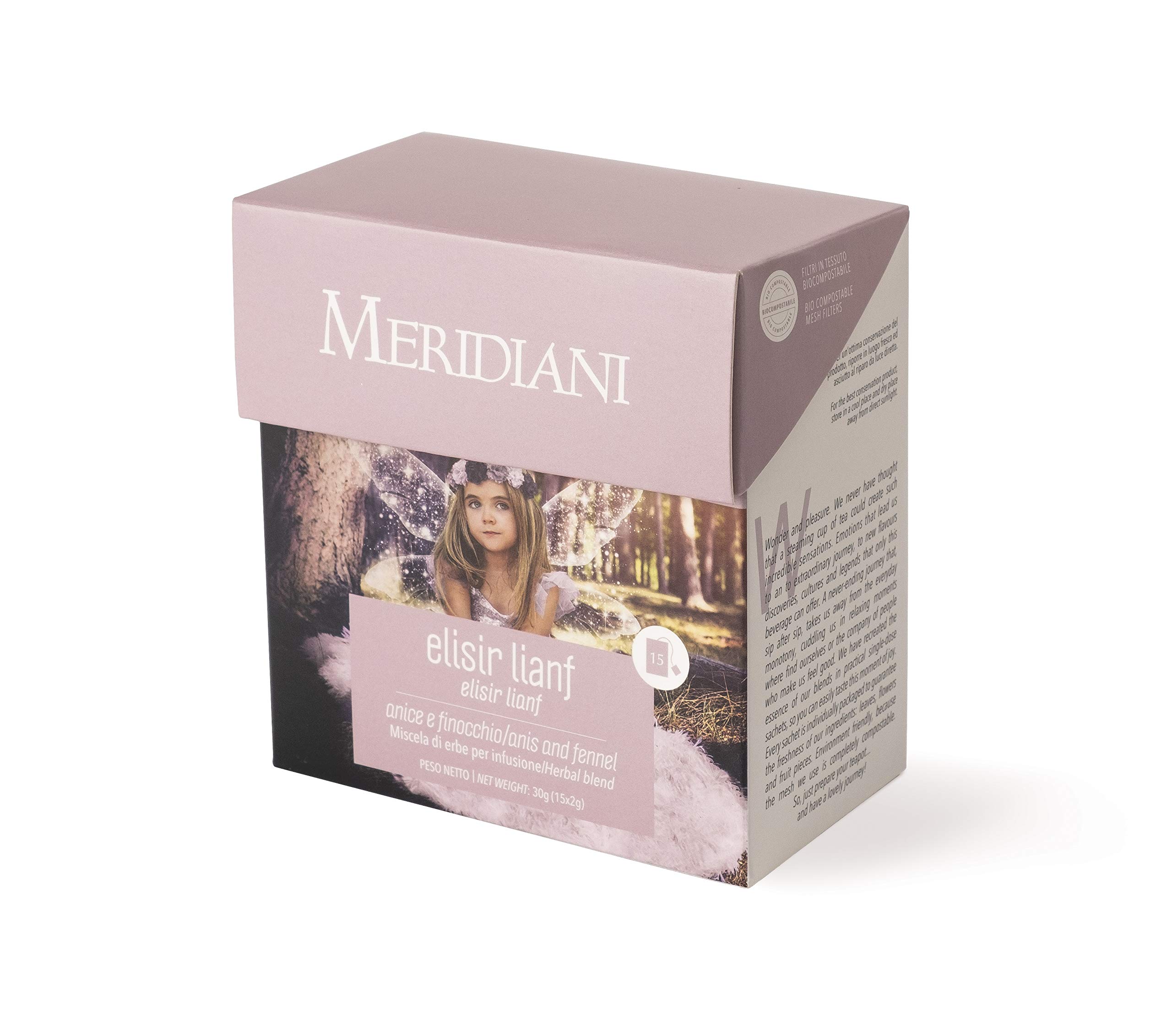 Meridiani Finocchio Anice Licorice Digestive Tea After Meals 15 organic fabric filters - Elisir Lianf - Fresh herbal tea ideal after meals - Meridiani Tea & Infusion
