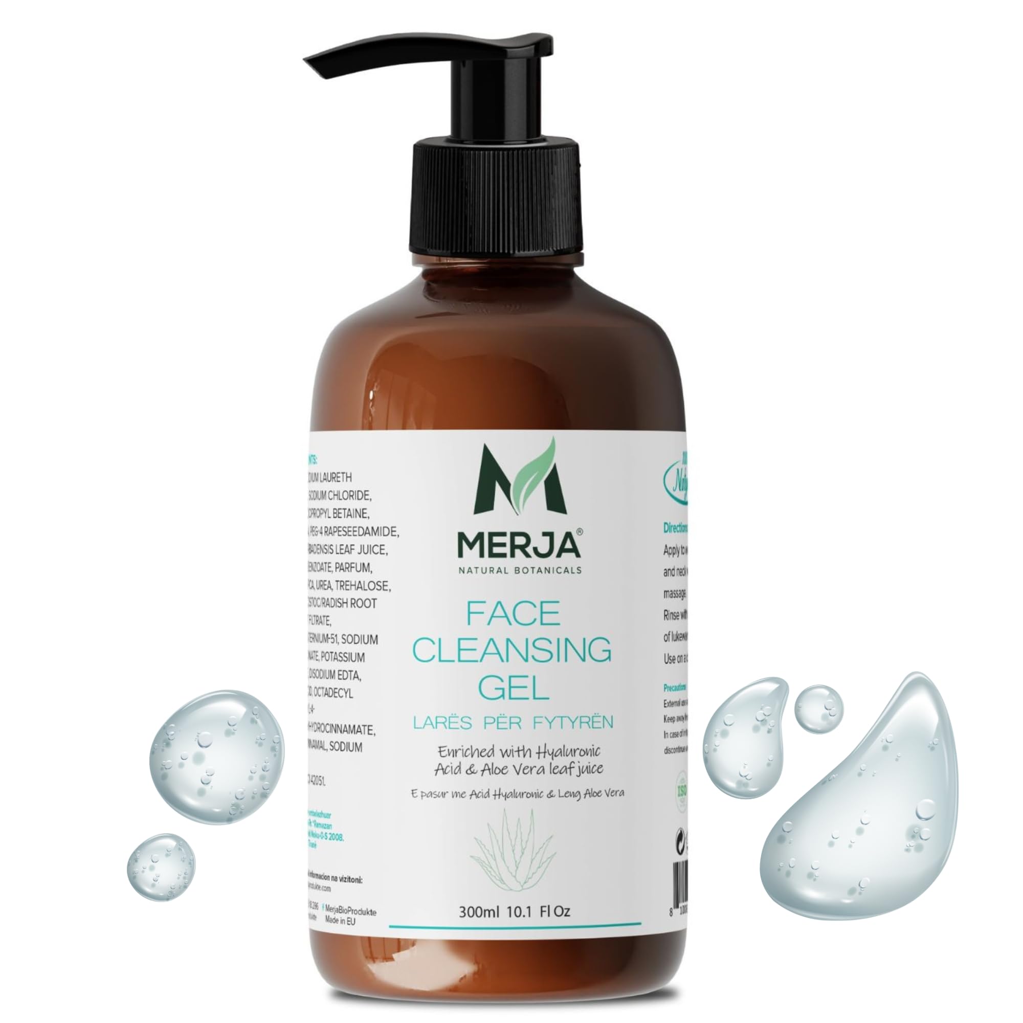 Merja Natural Face Cleansing Gel with Hyaluronic Acid and Aloe Vera 10.1 Fl Oz