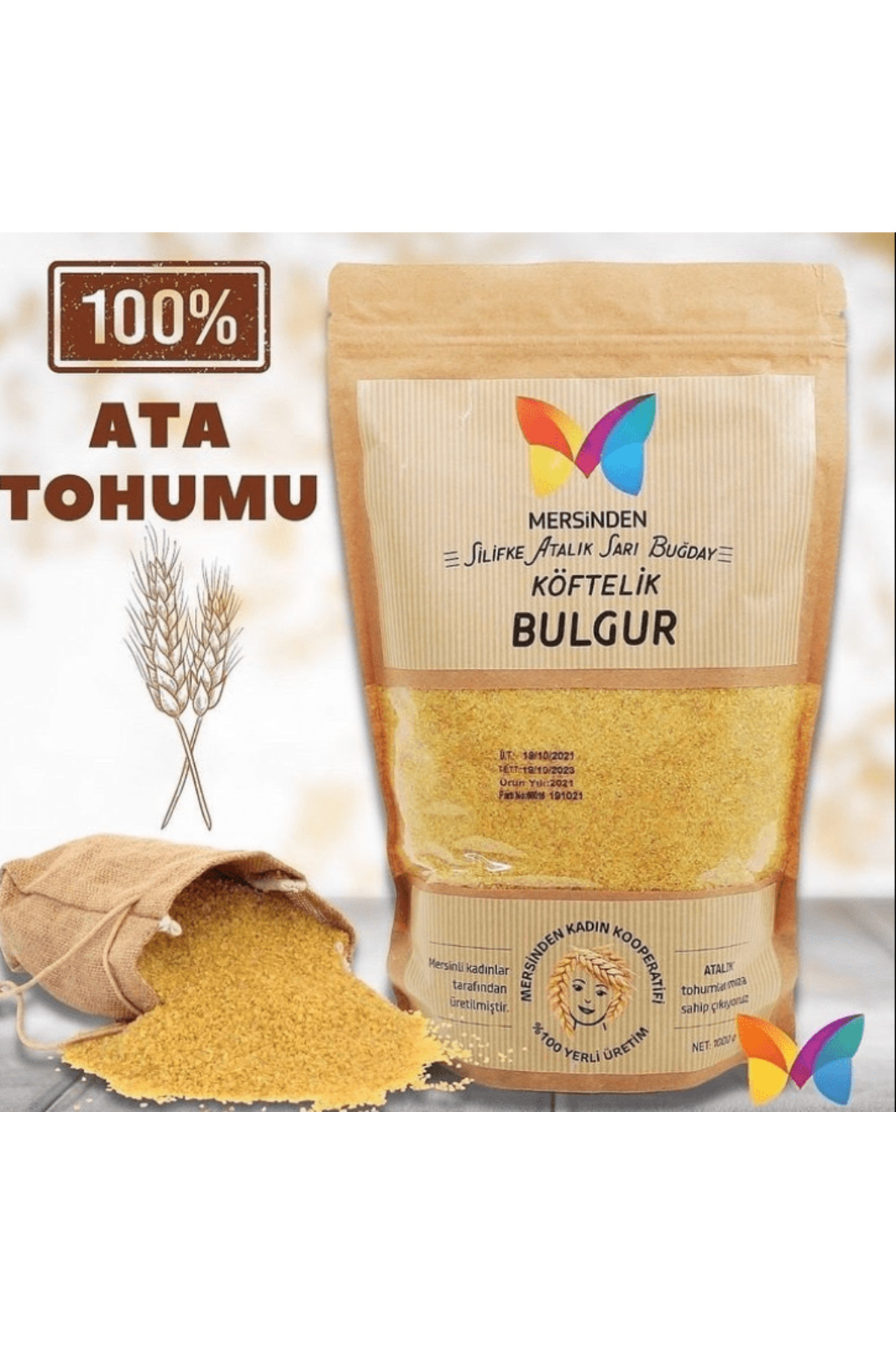 Üretim Sekli: 0 Ata Tohumu, Koruyucu ve Katki Maddesi IçermezTürü: Köftelik BulgurAmbalaji: Kraft Kilitli Doypack AmbalajliGida Isletmecisi Üretici Dagitici:S.S. Mersin Kadin Girisimi Üretim ve Isletme KooperatifiIsletme Kayit No: TR-33-K-034875Bu ürün Kadin Kooperatifi ve kadin emegi ile üretilmistir.Satin alarak dar gelirli kadinlarin istihdami, maddi kosullarinin iyilestirilmesi, egitim, girisim ve güçlendirme çalismalarina destek olabilirsiniz.