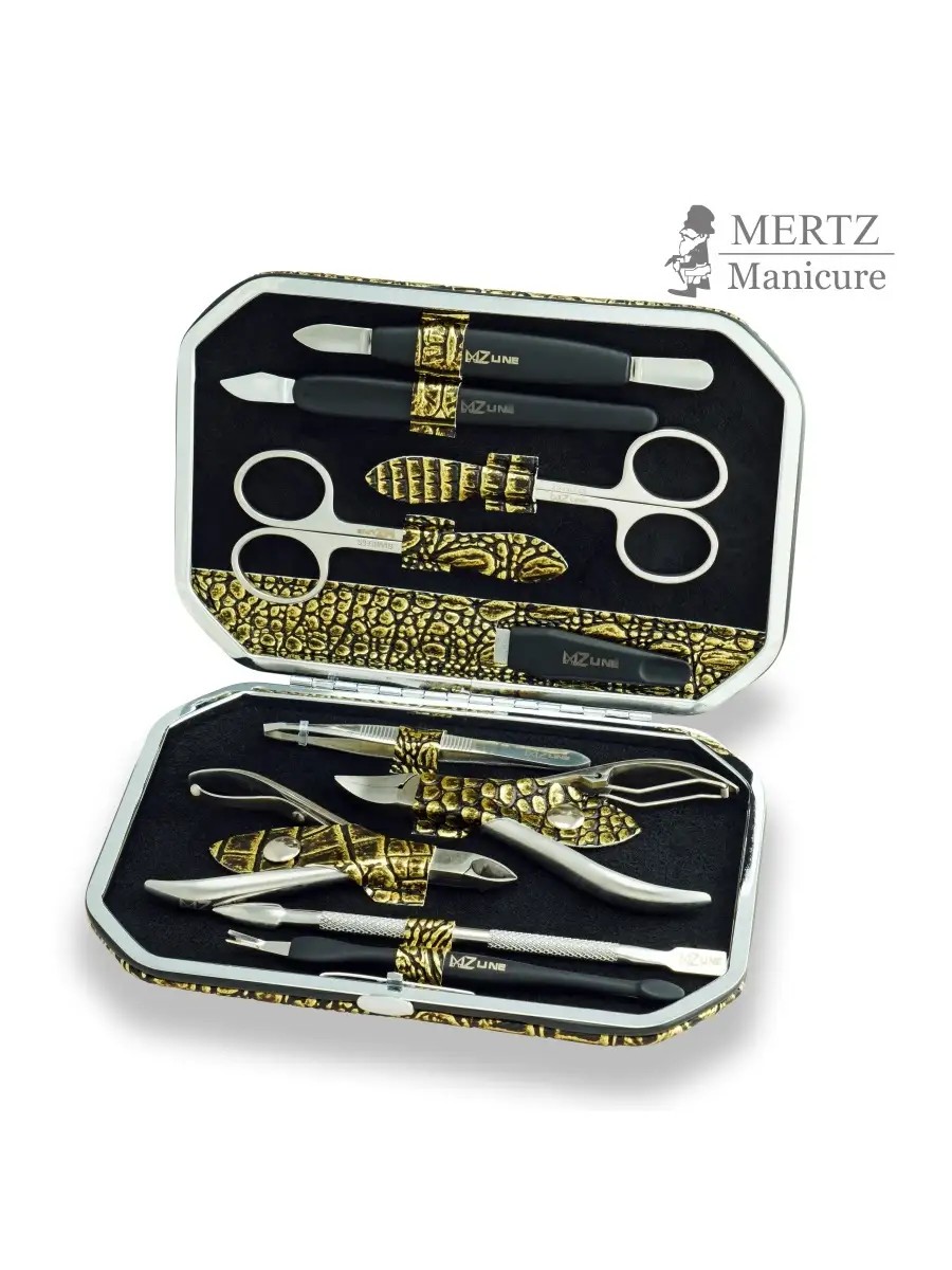 Маникюрный набор 6025 известного немецкого бренда Mertz изготовлен из высококачественных материалов, обеспечивающих надёжность, прочность и долговечность их работы.В наборе 10 предметов: ножницы маникюрные-2 пары, кусачки для ногтей, кусачки для кутикулы, 3 шабера маникюрных, нож для кутикулы, пилочка, и пинцет.Для бережного хранения инструменты упакованы в прочный футляр, который может также использоваться для ношения инструмента в сумочке или поездках.Отлично подходит для домашнего использования.Благодаря стильному дизайну прекрасно подойдёт в качестве подарка как женщинам, так и мужчинам!