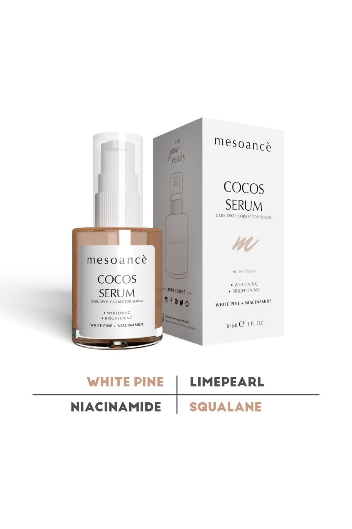 Leke ve renk esitsizlikleriyle mücadele edenbu özel serum, cilt bakim rutininizin ayrilmaz bir parçasi olacak. Cocos DarkSpot Corrector Niacinamide Serumu ile cildinizdeki farki hissedin, isiltili veesit bir cilt tonuna kavusun!