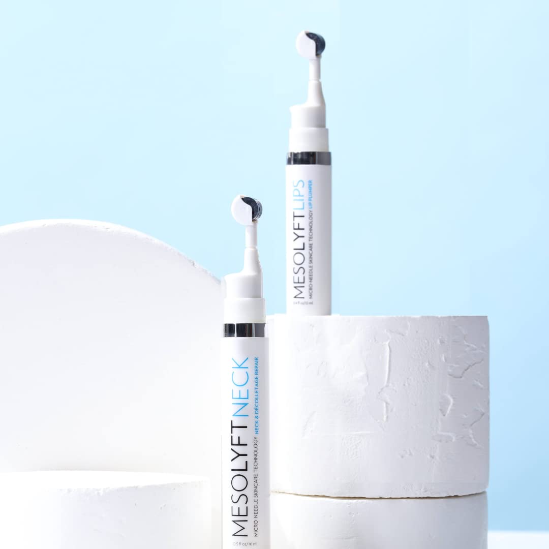 The powerhouse combo of MesoLyft Lip Plumper instantly plumps deeply nourishes lips and MesoLyft Neck Renewal Serum targets your necklines and décolletage to refine, tighten, brighten and reduce the appearance of fine lines.