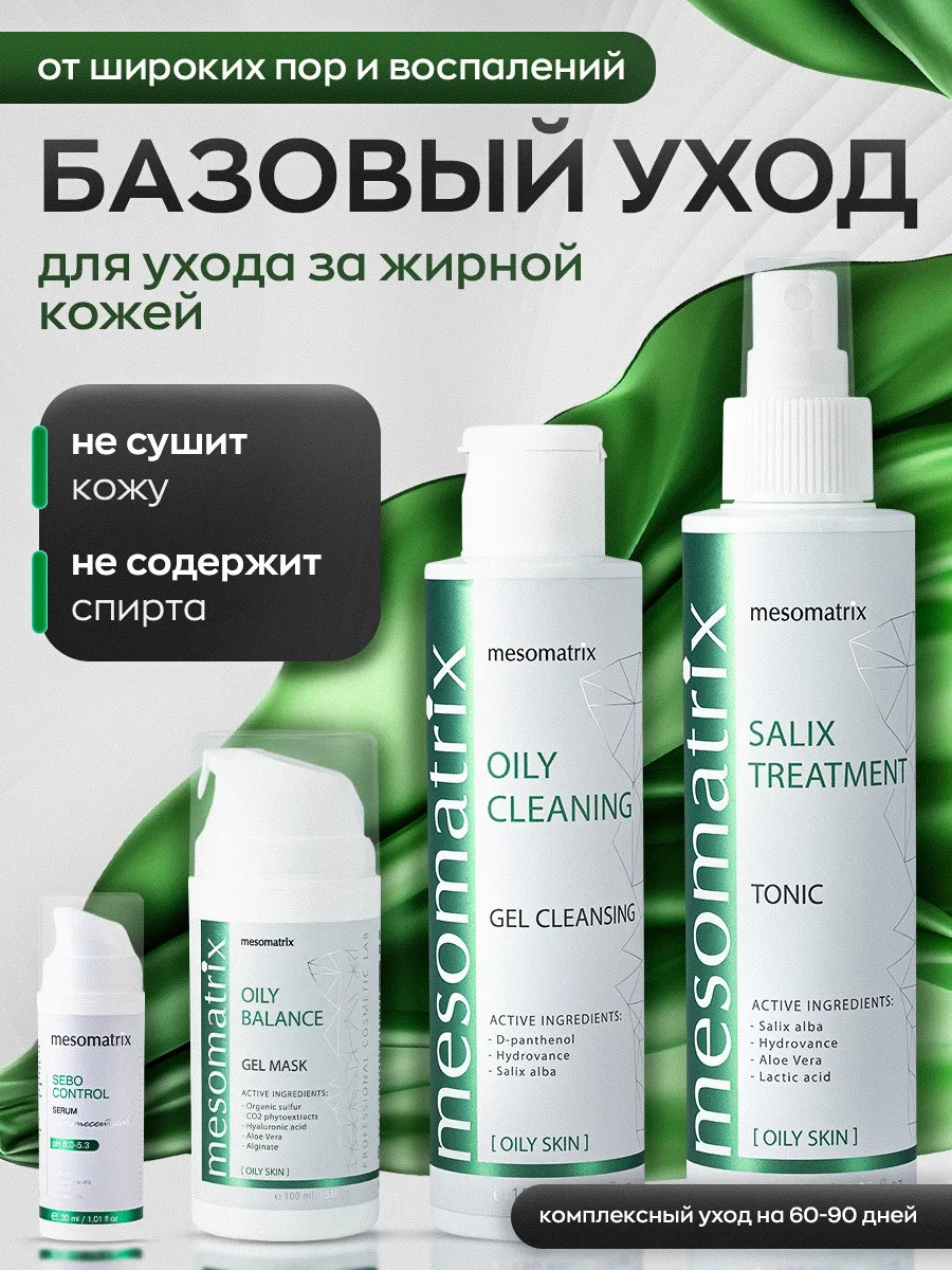 Состав набор: Мягкая гелевая пенка для тщательного очищения жирной кожи OILY GLEANING. Тоник SALIX TREATMENT - восстанавливает pH кожи, подтягивает кожу. Маска OILY BALANCE - интенсивная гель-маска c биоактивной серой и противовоспалительными фитоэкстрактами. . Себорегулирующая сыворотка матирующая SEBO CONTROL для проблемной, комбинированной кожи лица с активнрй серой 4%, ниацинамидом 4% и цинком, гиалуроновой кислотой Tetrahyal 4D.