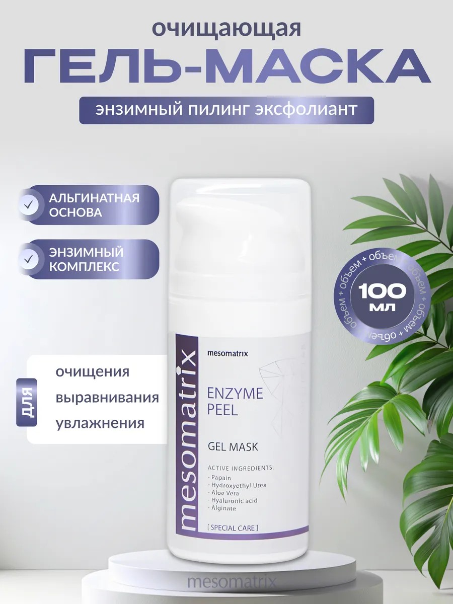 Гель-маска энзимный пилинг Мезоматрикс. Содержит ферментный комплекс, альгинат натрия и элементы, растворяющие избыточное кожное сало и раскрывающие поры. Энзимный комплекс способствует разрыхлению и растворению комедонов, уменьшению сальности, очищению пор. Происходит размягчение верхнего рогового слоя кожи, что усиливает проникновение веществ в косметических процедурах. Алое вера оказывает заживляющее и увлажняющее действие, смягчает рубцы, выравнивает цвет лица. Маска делает кожу более мягкой, выравнивает цвет. Энзимный пилинг уменьшает слой сухих кератиноцитов, что придает коже сияние и особый эффект ""свечения"".