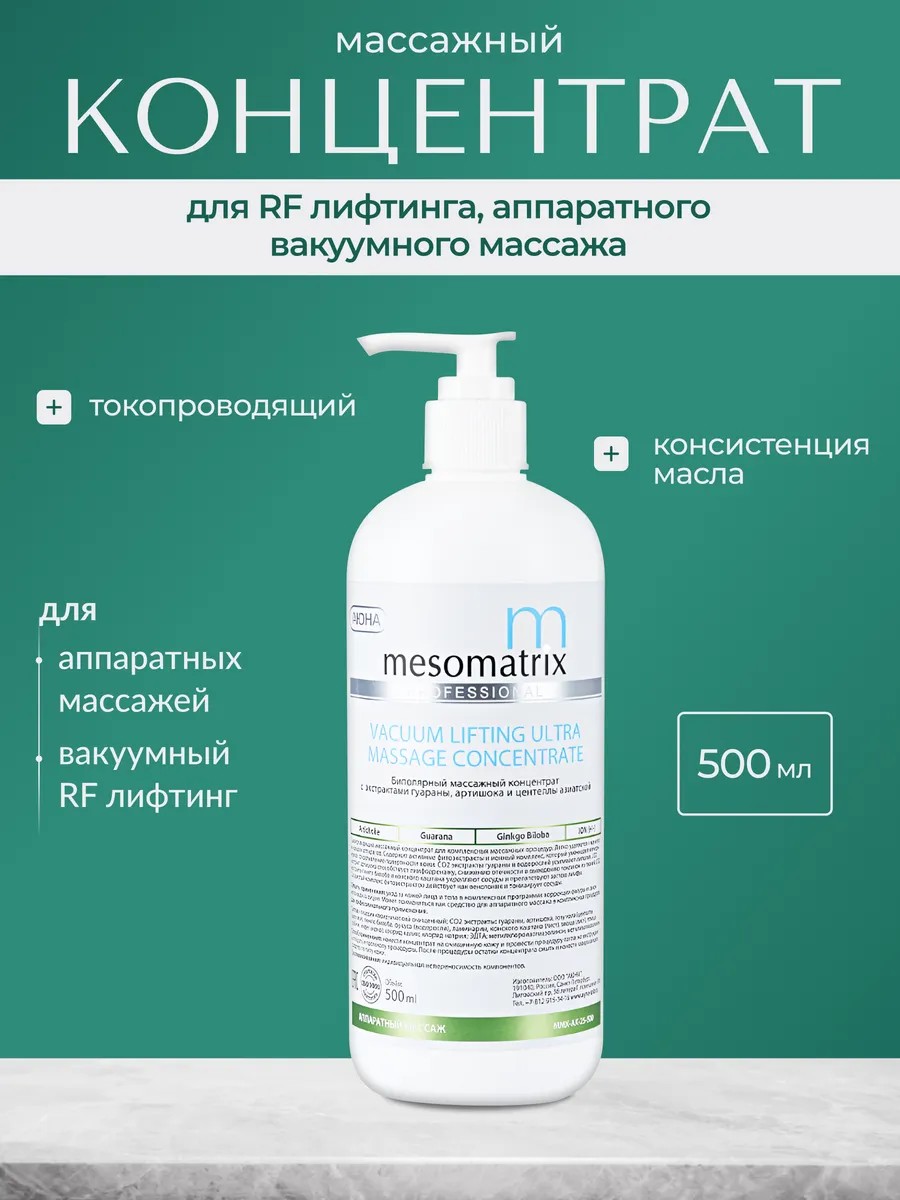 Биполярный концентрат для аппаратных массажей Мезоматрикс. Консистенция масла для массажа. Легко удаляется с манипул. Имеет выраженный лифтинговый эффект. Содержит липолитические и лимфодренажные фитоэкстракты, а также ионный комплекс. Обеспечивает лифтинг тканей лица, тела, области век. Улучшает тонус и тургор, укрепляет и уплотняет ткани, стимулирует синтез каркасных белков дермы. Средство для вакуумного RF лифтинга, кавитации, фонофореза, дерматонии, вакуумно-роликового массажа, а также для мануальных техник.