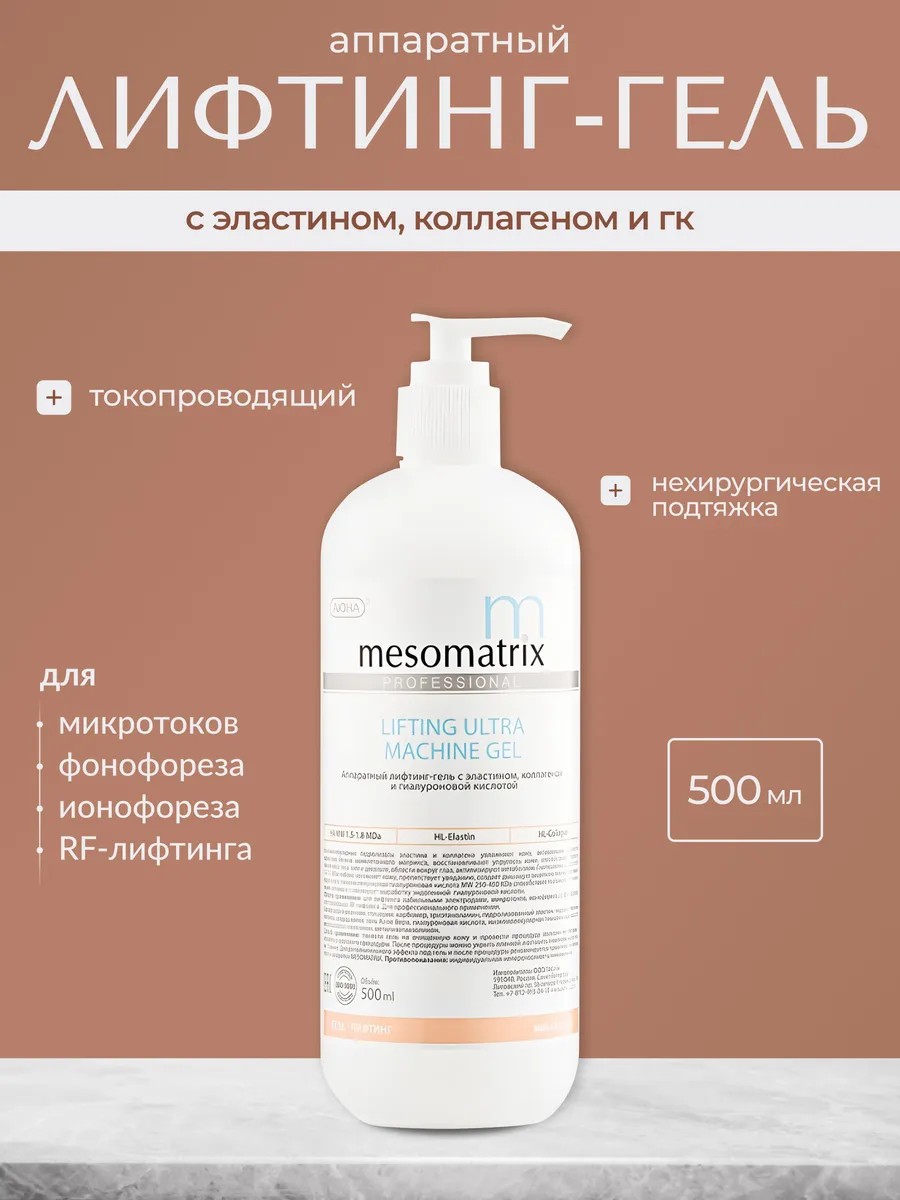Токопроводящий гель с выраженным эффектом лифтинга Mesomatrix. Гель для аппаратных процедур - микротоков, ультразвукового массажа, фонофореза, ионофореза, электропорации, микротоковой терапии, Rf-лифтинга. Содержит эластин и коллаген, гиалуроновую кислоту, ионный комплекс. Обеспечивает лифтинг тканей лица, тела, нехирургическую подтяжку кожи области век. Улучшает тонус и тургор, укрепляет и уплотняет ткани, стимулирует синтез каркасных белков дермы. Ионизированные активы. Без парабенов.