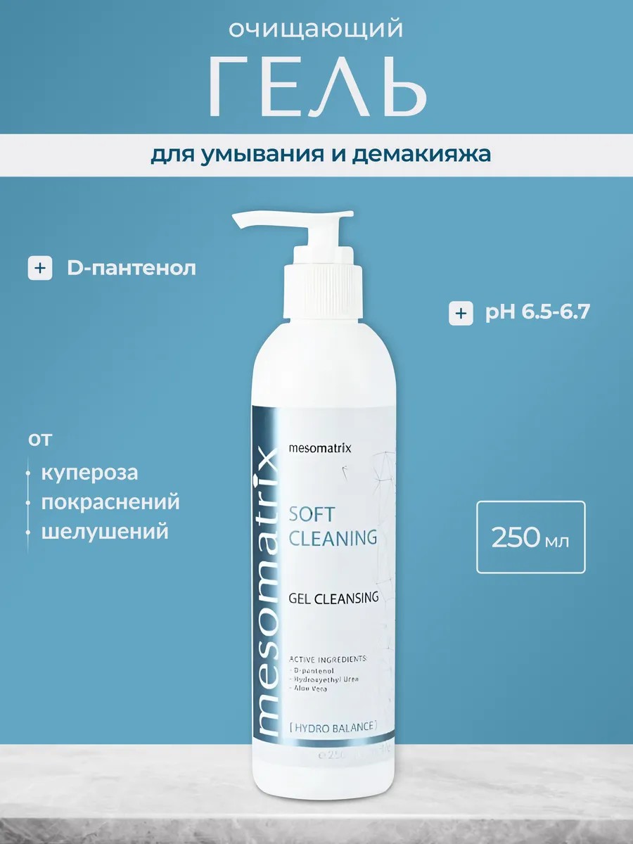 "Универсальный гель (пенка) для нежного очищения и смягчения всех типов кожи, продукт для очищения и демакияжа. Гипоаллергенная формула, без сульфатов, мицеллярный гель. Сочетается с активными сыворотками, кремом и масками MESOMATRIX. Не вызывает привыкания, не сушит. Экономный расход, совместимость со всеми средствами линейки Мезоматрикс. Укрепляет сосуды, оказывает лимфодренажное действие, уменьшает отеки, глубоко увлажняет, стимулирует выработку собственных полисахаридов, препятствует обезвоживанию и увяданию, уменьшает сухость и морщины.