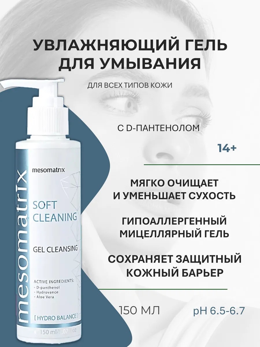 Mesomatrix SSoft Cleaning - гель для умывания лица с мягкими ПАВ для очищения всех типов кожи. Универсальный гель, который подойдет для нормальной, сухой, жирной, чувствительной кожи. Не пересушивает, не истончает эпидермис. Подходит для кожи, склонной к покраснению, шелушению, для кожи с куперозом и отдельными расширенными сосудами.