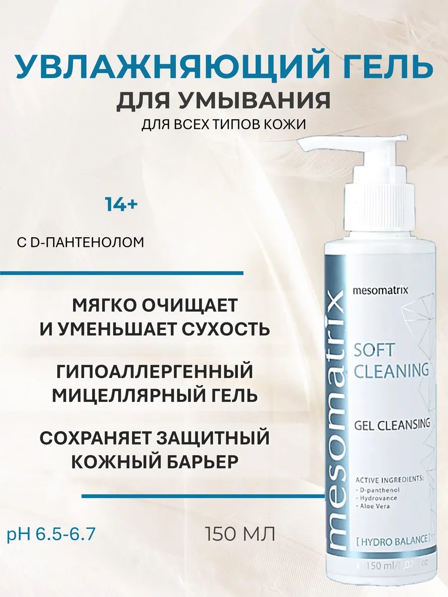 Mesomatrix SSoft Cleaning - гель для умывания лица с мягкими ПАВ для очищения всех типов кожи. Универсальный гель, который подойдет для нормальной, сухой, жирной, чувствительной кожи. Не пересушивает, не истончает эпидермис. Подходит для кожи, склонной к покраснению, шелушению, для кожи с куперозом и отдельными расширенными сосудами.