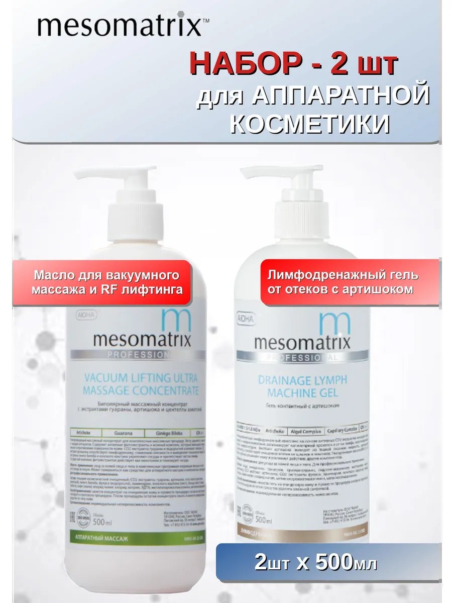 | Комплектация | Токопроводящий концентрат для RF лифтинга, аппаратного вакуумного массажа, 500 мл; DRAINAGE LYMPH, лимфодренажный гель с артишоком, 500 мл - 1 шт |