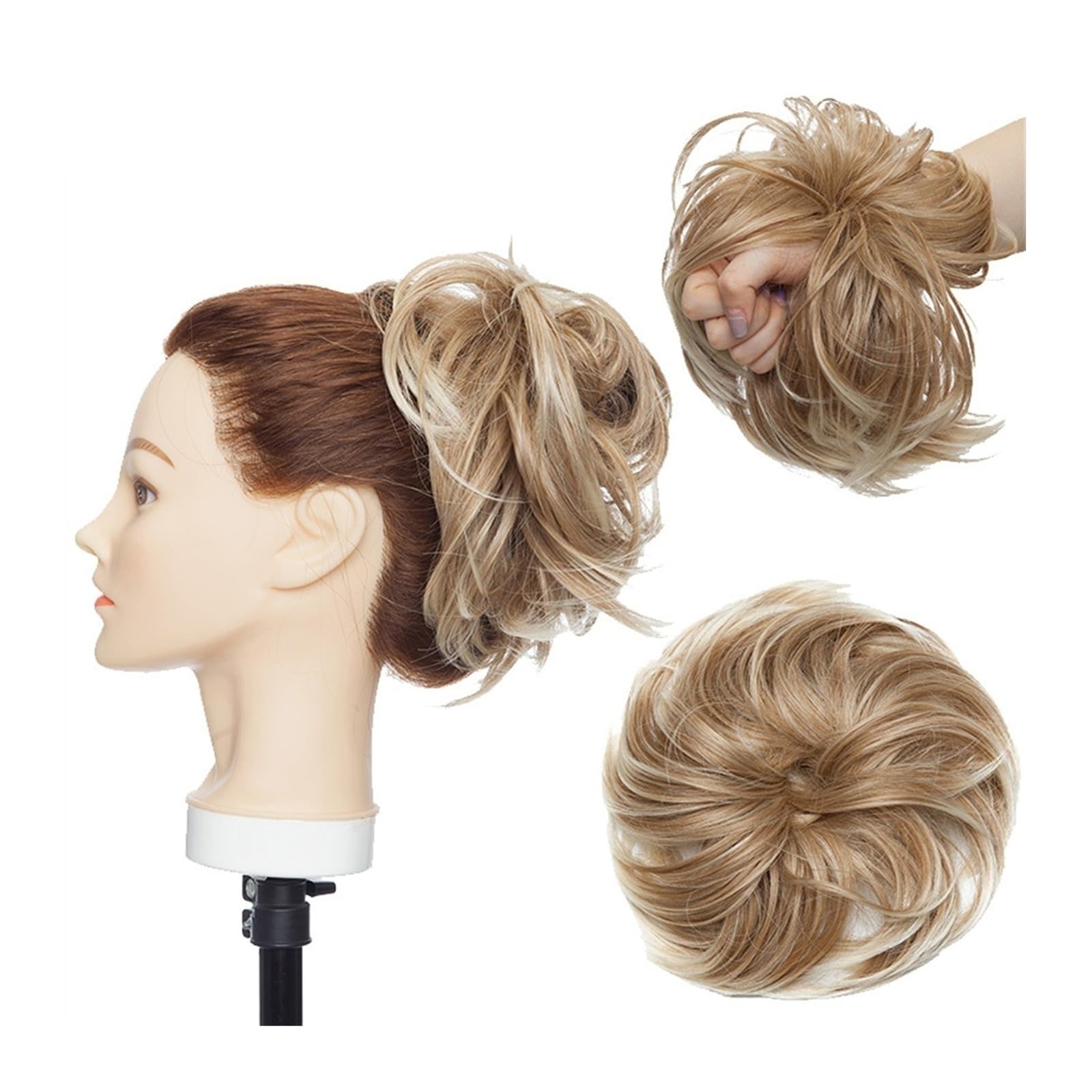 fiber, soft and natural,just like your own hair. Weight: 2.99 oz( 85 gram ); Color: Multiple Colors (May Vary by Monitor). ?Adjustable Size?Very was easy to fit with an elastic hair tie for most people. fit most bun and ponytail, and uneasy to discover or fall. ?Large Size?Large size bun hairpiece weighs 2.99 oz( 85 gram ), perfect for enriching the volume of hair and fullness to a bun or a ponytail, comfortable and easy to use, elegant and lovely. ?Universal Size?This bun wig is suitable for women and girls of all ages, and they look great wearing them every day. Specifically designed to hold hair in place, perfect for thinning to thick hair. ?Natural Hair Texture?Perfect for adding volume and fullness to your bun or ponytail. With a messy look, hair scrunchies for women not only look more casual but can perfectly blend with your own hair to create an elegant and fashionable hairstyle.