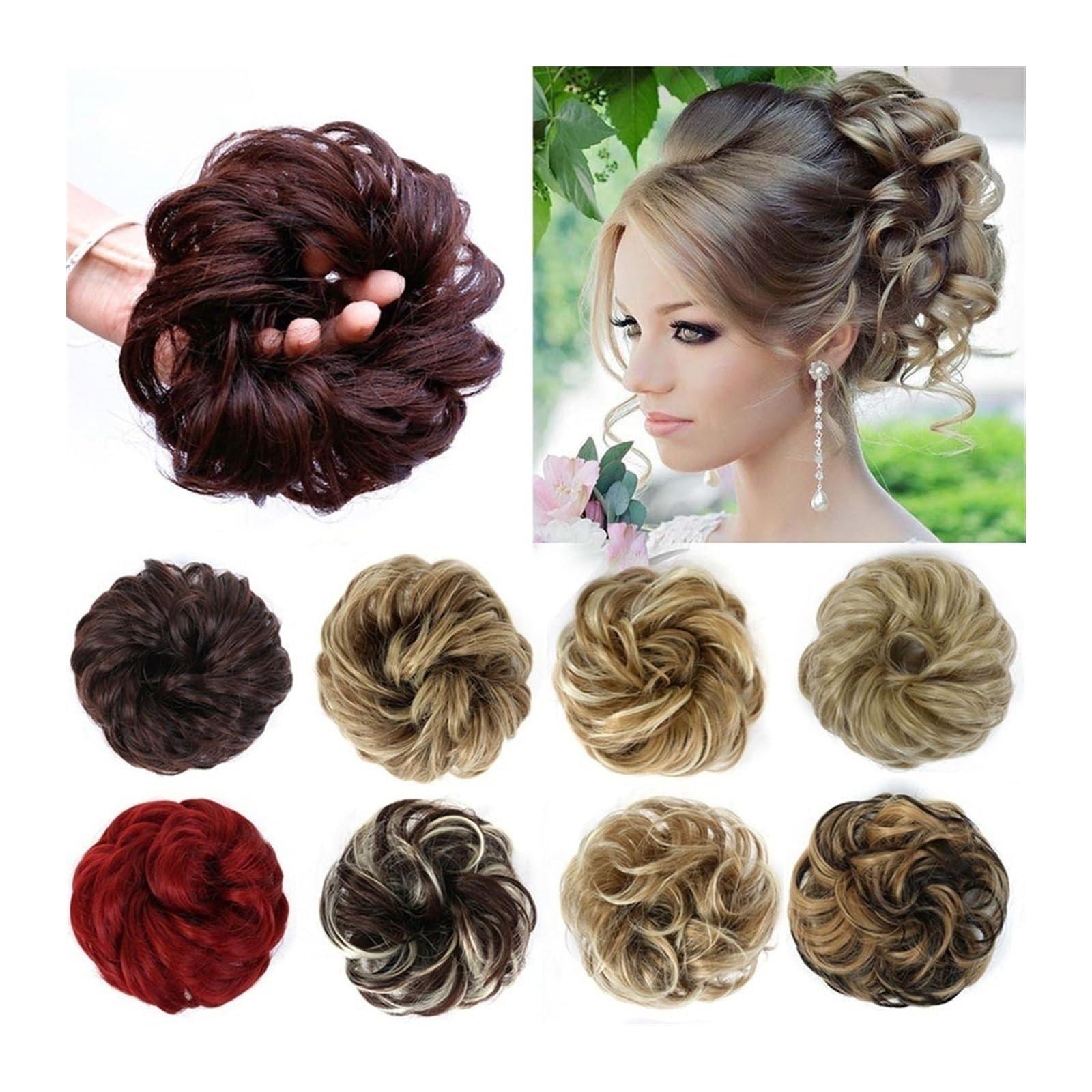 Fiber Color: 35 Colors Available Chignon Type: Curly Chignon Attachment: Rubber Band Suitable: Hair Pieces for Women Feature: Soft, Smooth, Comfotable Packing List: 1* Wavy Curly Bun Hair Extension Note: 1. Please check the size and color before purchg. 2. Does not include items other than those shown in the product photo. 3. Please note that due to the different monitors, slight chromatic aberration may occur, please understand. 4. The above data is for reference only, the size is manual measurement, each variable may be different, please refer to the actual product, thank you.EASY TO STYLE : Achieve The Perfect Updo In Seconds! Simply Tie Your Hair Into A Ponytail Or Bun, Then Wrap The Messy Bun Into The Hairstyle You Like. CARE : The Curly Chignon Updo Hair Piece Need to Be Maintained with Shampoo and Conditioner, Preferably Air Dry. ADVANTAGE : This Hair Bun Extension is Very Easy to Wear, Convenient and Quick to Change Your Hairstyle in Seconds, Save Time and Effort, Perfect for Ladies at Weddings, Prom, Work, Dinner, and Casual Time. MATERIAL : This Messy Bun Hair Extensions is High Quality Synthetic