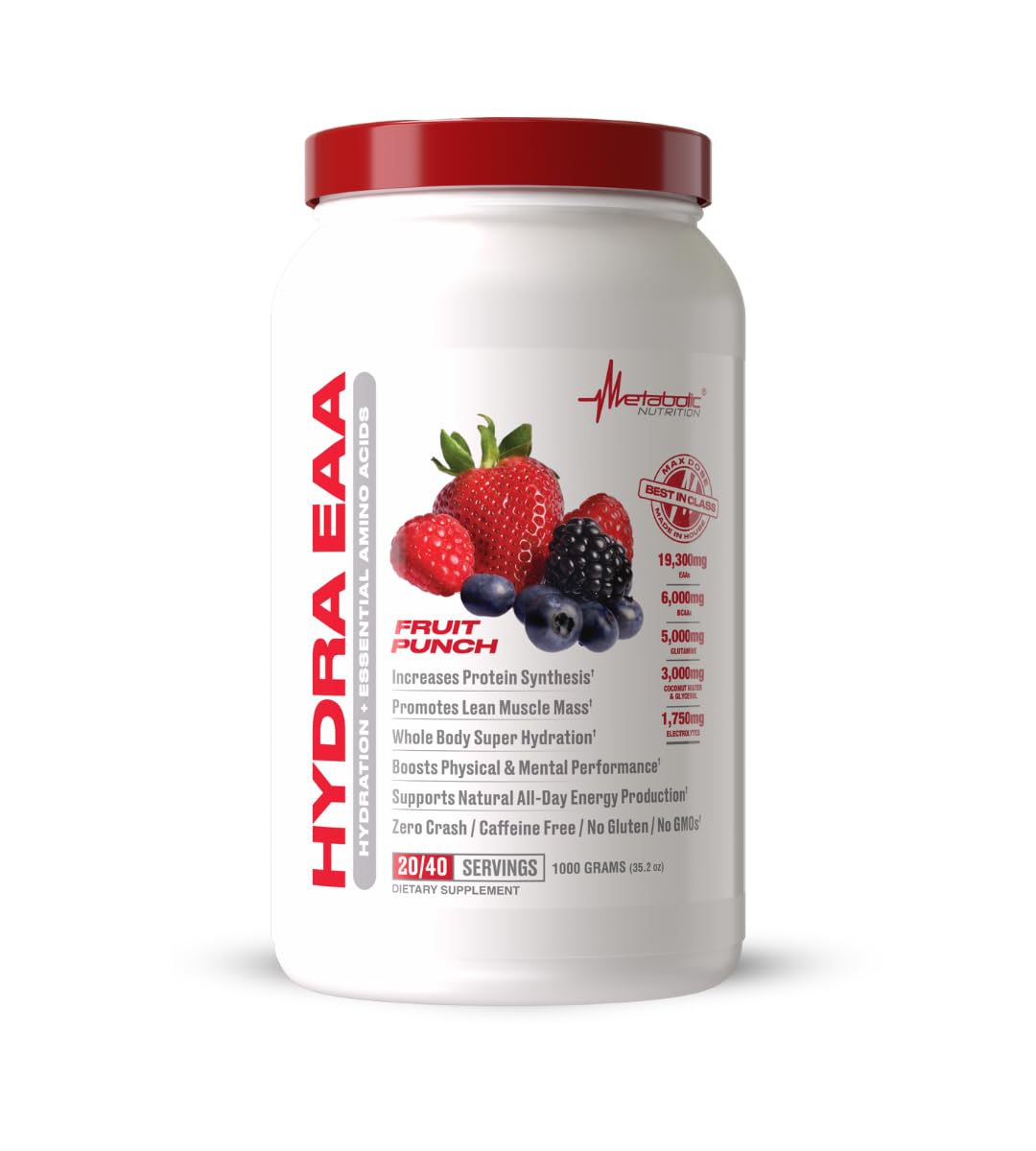 Metabolic Nutrition Hydra EAA, 1000g of Essential Amino Acids + Hydration, EAAs, BCAAs, Glutamine, Electorlytes, Coconut Water & Glycerol, Amazing Flavors (Fruit Punch, 1000g) Fruit Punch 2.21 Pound (Pack of 1)