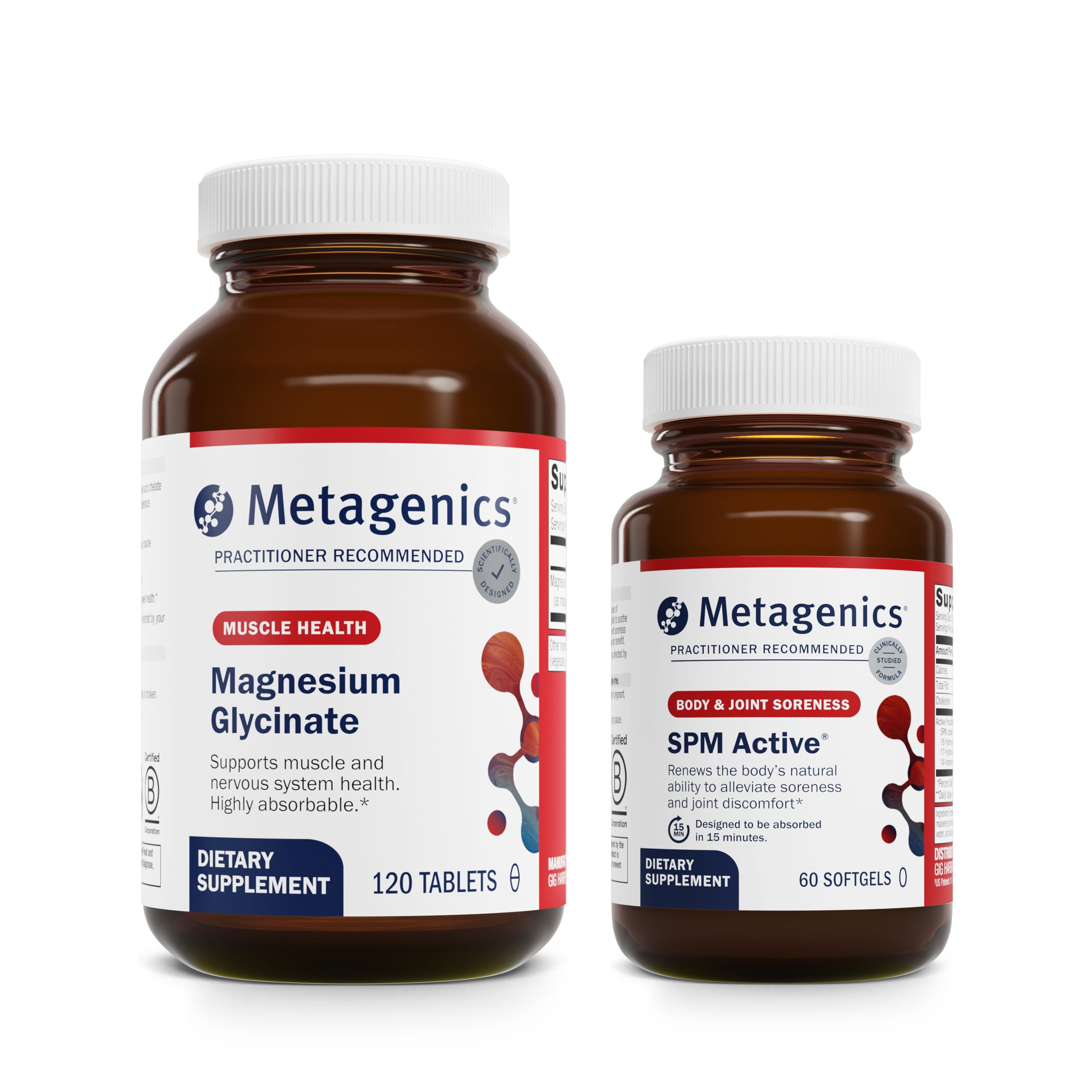 Metagenics Relief Duo - Magnesium Glycinate & SPM Active - 120 Tablets of Magnesium Glycinate for Nervous System Support - 60 Softgels of SPM Active for Joint Comfort & Minor Discomfort Relief