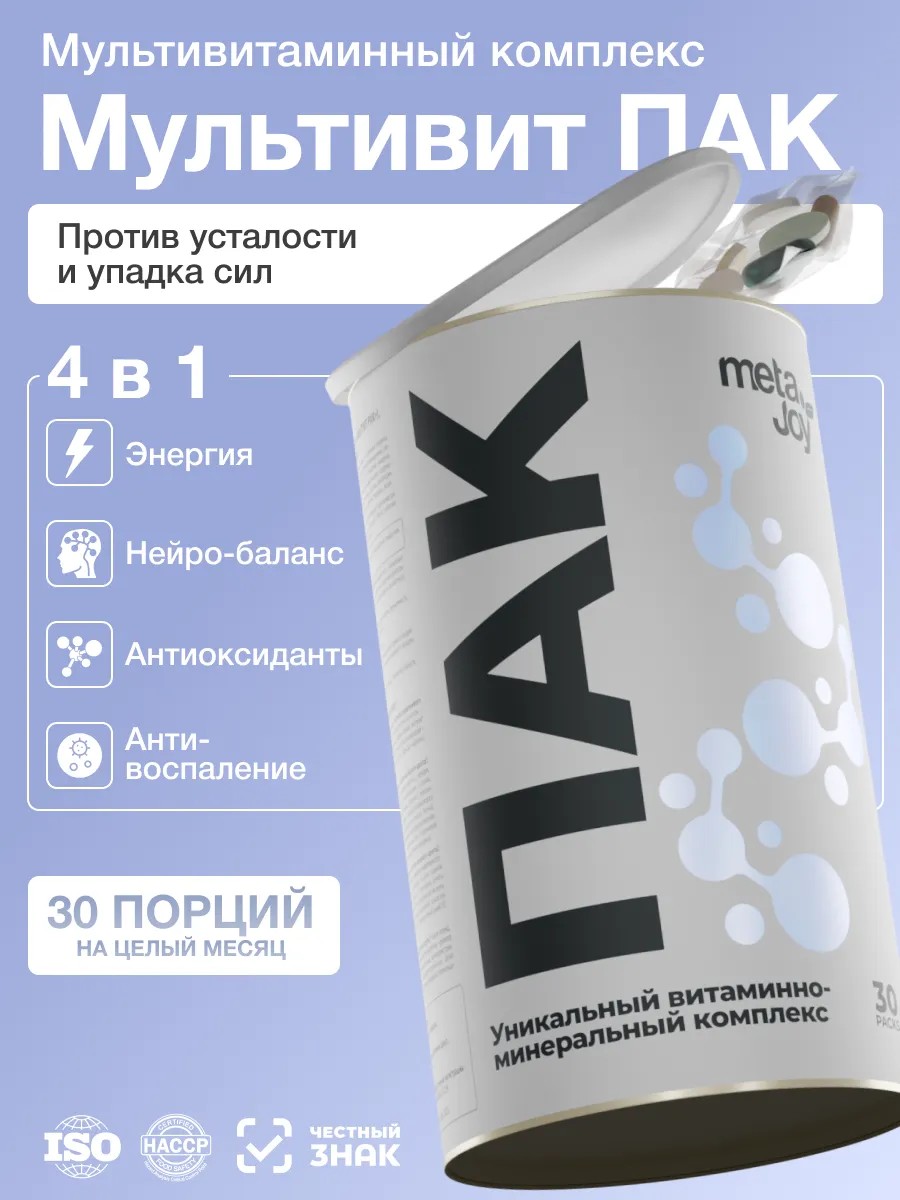Витаминно-минеральный комплекс Pak от MetaJoy — это комплексный подход. Один продукт заменяет множество добавок, обеспечивая всестороннюю поддержку организма; качество и безопасность — производится из высококачественных ингредиентов, соответствует высоким стандартам качества.