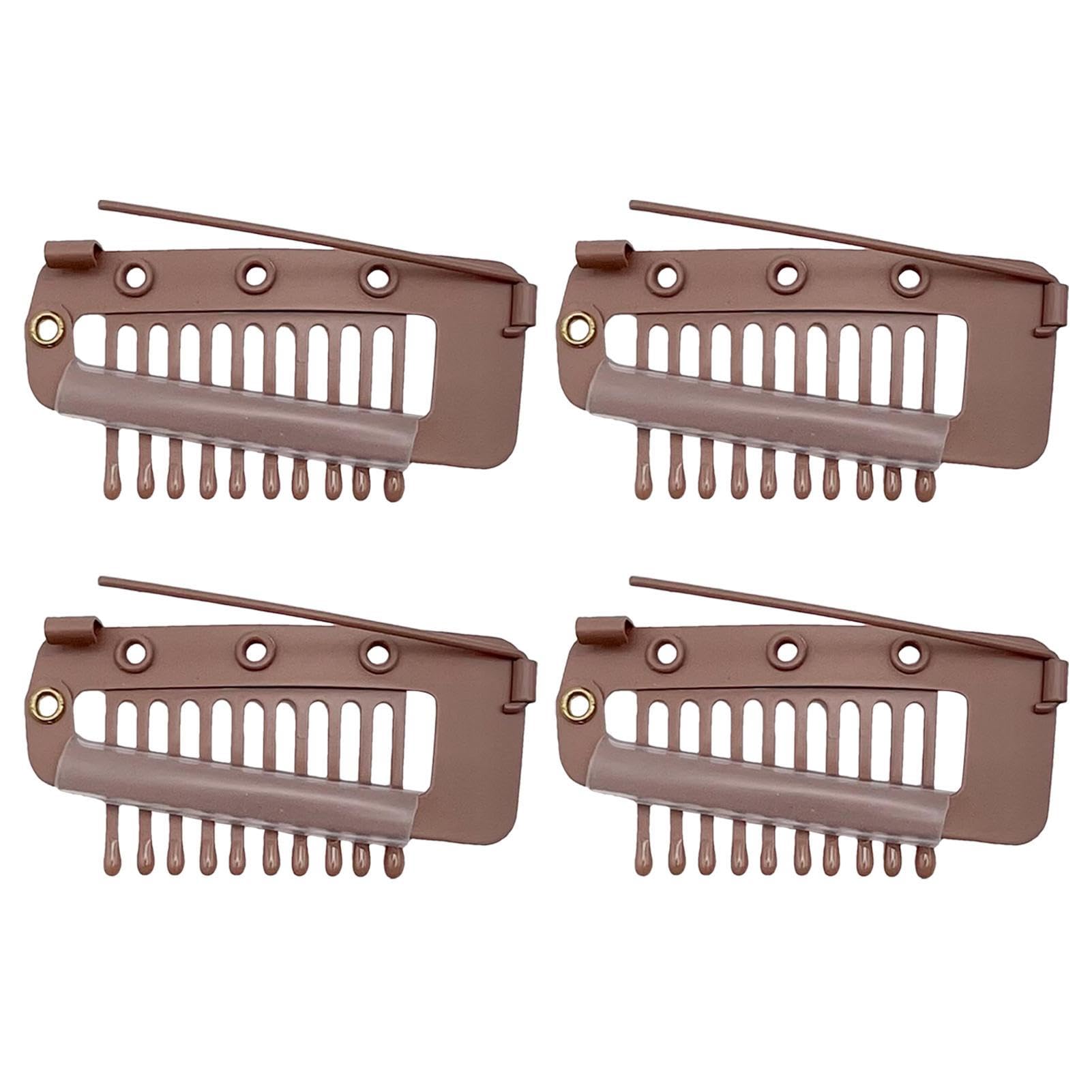 Metal Wig Clips Hair Extension Clips Snap Comb Clips Wig Clips to Sew in and Secure Hair Fixed Bb Clip with Brooch Snap Wig Accessories Clips for Women 4 Brown