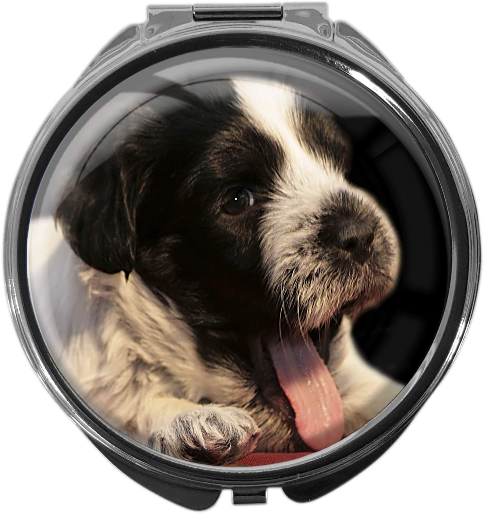 metALUm pill box with mirror round metal 3 compartments PUPPY #1038