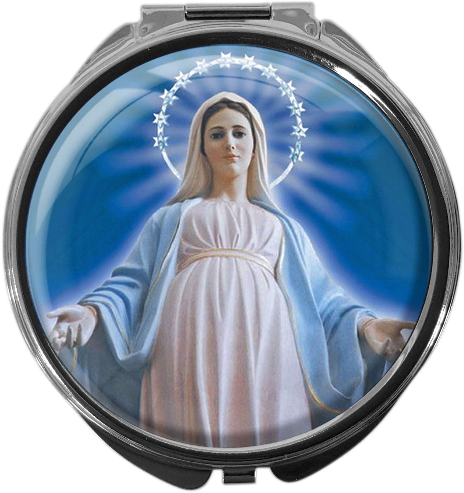 metALUm ® Pillendose aus Metall Runde Tablettenbox aus Metall mit einer hochwertigen Kunstharzversiegelung. Trotz ihrer Größe von 6,5 x 6,2 x 1,5 cm liegt sie sehr gut in der Hand. Der sichere Klippverschluss sorgt dafür, dass die Tabletten auch dann nicht aus dem Pillendöschen herausfallen können, wenn sie sich in einer Tasche befindet. Für den Fall, dass sie unterwegs einen kleinen Spiegel benötigen, wird Ihnen diese Tablettendose ein nützlicher Helfer sein, da sich auf der Deckelinnenseite ein Spiegel befindet. Ein weiterer Vorteil dieses Spiegels ist, dass er aus Spiegel - Acrylglas besteht und somit unzerbrechlich ist, was sich spätestens dann als echter Vorteil erweist, wenn die Pillendose mal auf den Boden fällt. Um Ihre Tabletten gut organisieren zu können, verfügt die Pillendose über drei Einteilungen bzw. Fachteiler. So fällt es dem Benutzer leichter, seine Tabletten voneinander zu trennen. Motiv: JUNGFRAU MARIA * Verchromter Metallguss mit Kunstharzbeschichtung * Runde Form * Sicherer Klippverschluss * 3 Fächer * Hergestellt in Handarbeit in Mönchengladbach, Deutschland