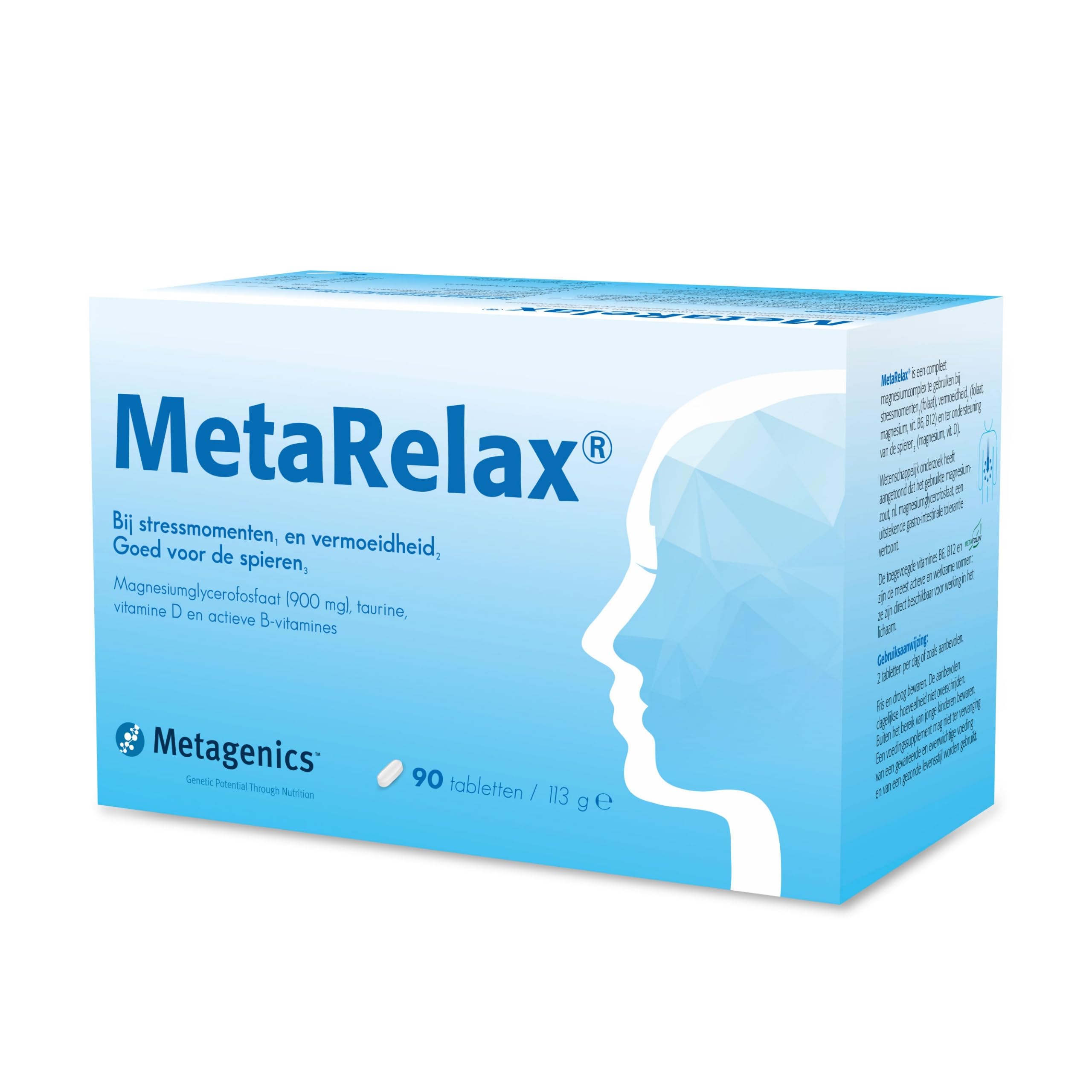 Unleash your potential: Metagenics, recommended by healthcare professionals, enhances well-being for a healthier life with carefully selected nutrients and scientifically proven nutritional supplements. Convenient dosage: Just take 2 tablets daily to receive all the benefits of MetaRelax. A simple way to support your well-being. Enhanced with cofactors: Essential cofactors, including vitamins B6 and B12, folic acid, vitamin D, and taurine, work synergistically to maximize the benefits of magnesium. Bioavailable magnesium: Magnesium glycerophosphate ensures optimal absorption for complete well-being. Effective against stress: MetaRelax provides immediate and long-lasting relief from the symptoms of stress, fatigue, and muscle tension.Libérez votre potentiel : Metagenics, recommandé par les professionnels de la santé, améliore le bien-être pour une vie plus saine grâce à des nutriments soigneusement sélectionnés et à des suppléments nutritionnels scientifiquement prouvés. Dosage pratique : Il suffit de prendre 2 comprimés par jour pour bénéficier de tous les avantages de MetaRelax. Une manière simple de soutenir votre bien-être. Renforcé par des cofacteurs : des cofacteurs essentiels, notamment les vitamines B6 et B12, l'acide folique, la vitamine D et la taurine, agissent en synergie pour maximiser les bienfaits du magnésium. Magnésium biodisponible : la présence de magnésium sous forme de glycérophosphate de magnésium garantit une absorption optimale pour un bien-être complet. Efficace contre le stress : MetaRelax offre un soulagement immédiat et durable des symptômes du stress, de la fatigue et de la tension musculaire.