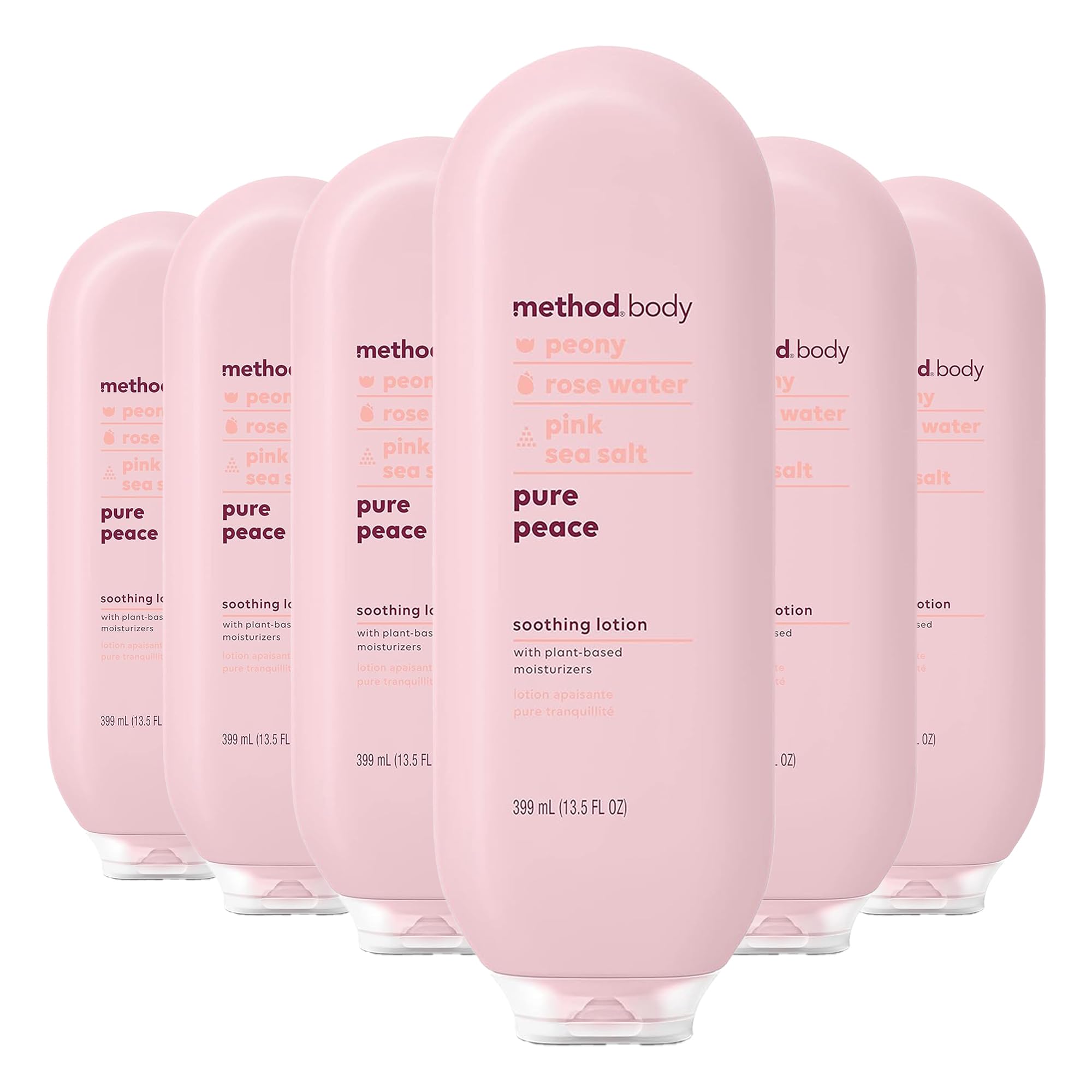 Clean Beauty You Can Trust: Paraben-free, phthalate-free, and cruelty-free for peace of mind and skin. Nourishing Plant-Based Formula: Made with coconut oil, shea butter, and vitamin E to soften and smooth skin. Soothing Pure Peace Scent: Notes of rose water, pink sea salt, and peonies for a clean, calming fragrance. 24-Hour Lightweight Hydration: Deeply moisturizes without a greasy feel, ideal for dry or sensitive skin. Value 6-Pack: Stock up with six 13.5 fl oz bottles—perfect for families or daily use.