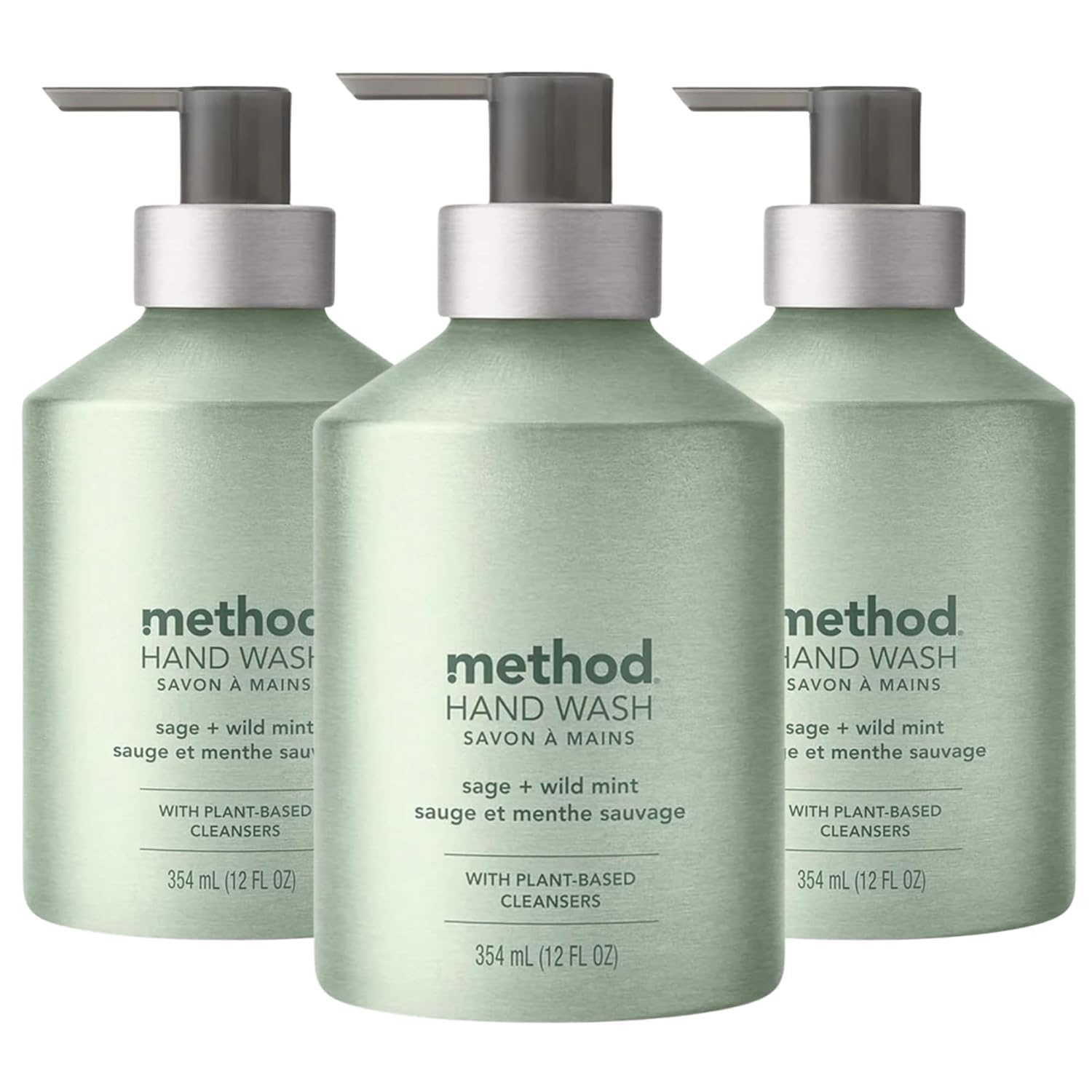 Method Hand Wash Sage + Wild Mint 12 fl oz (3 Pack) Plant-Based Liquid Hand Soap with Refreshing Herbal Scent Biodegradable Formula Recyclable Bottle