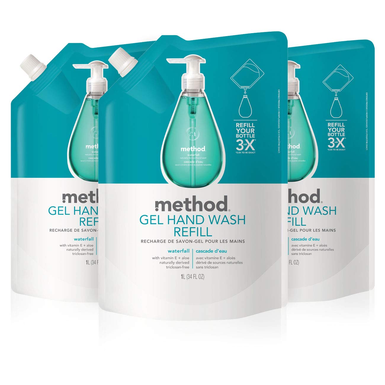 Method Method Gel Hand Soap Refill Sea Minerals 34 Ounce 3 Pack Waterfall 34 fluid_ounces