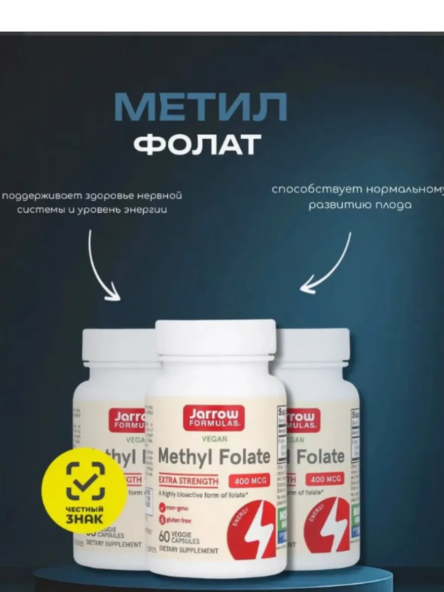 метилфолат, methyl folate, jarrow formulas, активная фолиевая кислота, витамин b9, quatrefolic, метафолин.