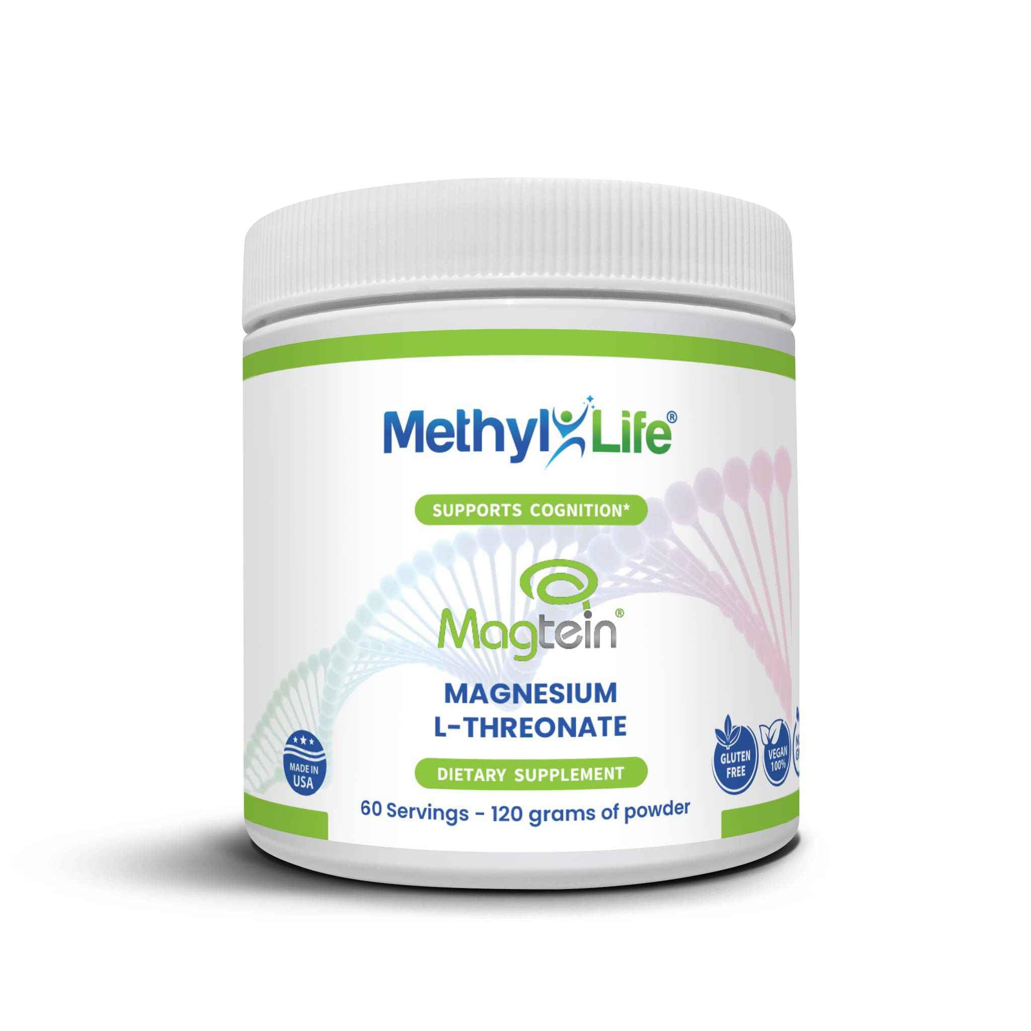 Methyl-Life Magtein Magnesium L-Threonate Powder is designed for those who want more than just another magnesium supplement, they need some brain power as well. At its core Magtein is a patented, clinically-studied form of magnesium L-threonate recognized for its unique ability to cross the blood-brain barrier. This makes it distinct from standard magnesium forms, which often struggle with effective absorption. Each 120g jar provides 60 servings of pure, unflavored powder that mixes easily into water, juice, milk or smoothies. With no added flavors, sweeteners or fillers, you get a completely filler free formula that prioritizes purity and flexibility. Whether you need a seamless integration into your morning routine, to split servings throughout the day or want to stack it with other targeted nutrients, this powder adapts to your preferred needs. What sets Methyl-Life apart is our focus on advanced nutritional science. We're known for delivering specialty ingredients such as Cerebrofolate and Magtein - patented forms recognized for their stability, bioavailability and role in brain and methylation health. This commitment to premium sourcing ensures that our products go beyond generic supplements, giving you access to formulations crafted with precision, purpose, increased absorption and truly effective results. Produced in the USA under strict quality standards and third-party tested, each batch of Magtein Magnesium L-Threonate Powder is verified for purity, potency, and consistency. It's Non-GMO, gluten-free, soy-free, and free from major allergens. With transparency at every step, Methyl-Life makes it simple to choose a purely bioavailable magnesium powder that stands out for its integrity and science-backed formulation. Upgrade your wellness routine with targeted support - choose Methyl-Life Magtein Magnesium L-Threonate Powder for clean, pure, brain-preferred magnesium you can trust. These statements have not been evaluated by the Food and Drug Administration. This product is not intended to diagnose, treat, cure, or prevent any disease.FROM A TRUSTED SPECIALTY BRAND – Methyl-Life is recognized for using premium, focusing on products and nutrients that offer superior absorption. We specialize in methylation and brain-focused nutrients, setting us apart from generic supplement brands. Choose Magtein Magnesium Powder backed by expertise in advanced nutritional science. CRAFTED WITH CARE, VERIFIED FOR PURITY – Every batch is produced under strict quality standards in the USA and third-party tested to verify potency, purity, and consistency. Free from gluten, dairy, soy, artificial colors, and major allergens, this formula reflects our commitment to clean sourcing and full transparency. 60 SERVINGS OF CLEAN, CUSTOMIZABLE SUPPORT – One jar delivers a full 120g of powder, equal to 60 flexible servings. Take daily, split servings, or stack with other supplements - your wellness routine, your way. Unlike bulky capsules or blends, this pure Magtein powder adapts easily to fit your preferences and lifestyle. SUPERIOR ABSORPTION, ZERO FILLERS – Each scoop provides pure magnesium L-threonate with no added flavors, sweeteners, or fillers. Just mix the unflavored powder into water, juice, milk or smoothies for fast-dissolving, flexible use. A transparent, no-filler approach designed to give you maximum absorption without compromise. PATENTED MAGTEIN FORMULA FOR BRAIN SUPPORT – Made with Magtein, the only patented form of magnesium L-threonate clinically studied for its ability to cross the blood-brain barrier. Unlike standard magnesium, it delivers targeted absorption where it matters most, making it a smart choice for those serious about clean, effective magnesium supplementation for cognition.