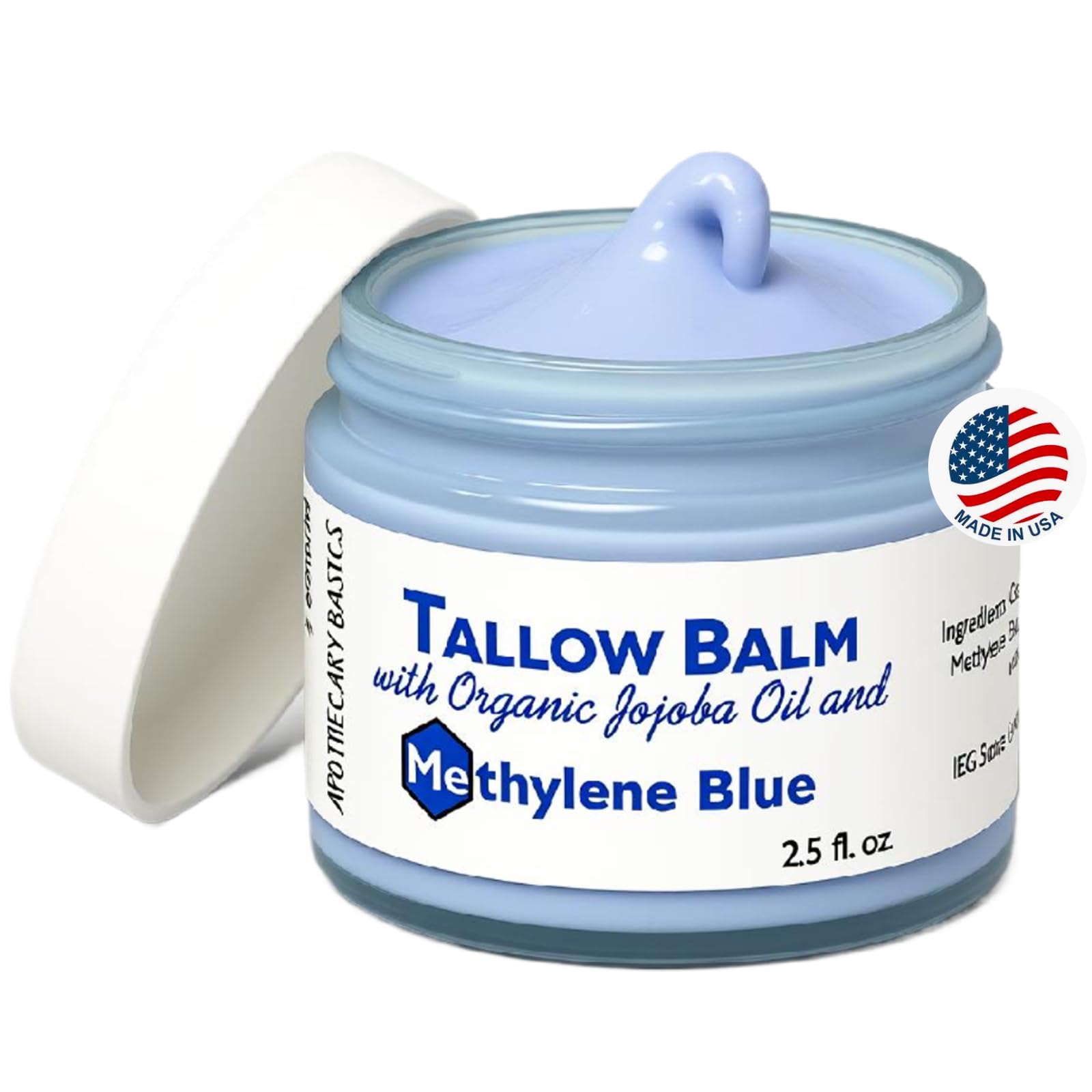 VERSATILE FACE BODY HYDRATION: A truly multi-purpose moisturizer, it provides intense, non-greasy hydration for your entire body. It helps condition the skin, leaving it feeling soft, supple, and refreshed, making it a versatile staple for your daily skincare ritual. SOOTHES AND BALANCES SKIN'S APPEARANCE: This gentle yet effective balm helps to soothe the look of skin and promote a more even tone and texture. It is ideal for helping to maintain comfortable, balanced-looking skin. DEEP HYDRATION FOR A SUPPLE, YOUTHFUL LOOK: The rich, moisturizing properties of tallow and Methylene Blue work together to provide intense hydration. This helps to condition the skin, promoting a soft, supple feel and supporting the appearance of a smoother, more refreshed complexion. POTENT ANTIOXIDANT SUPPORT WITH METHYLENE BLUE: Infused with Methylene Blue, a powerful antioxidant, this formula helps support the skin's natural defense against daily environmental stressors. This process aids in promoting a more vibrant, balanced, and healthy-looking complexion. NUTRIENT-DENSE BASE WITH GRASS-FED TALLOW: Our balm is crafted with a base of Grass-Fed Beef Tallow, a source of vitamins A, D, E, and K. This nutrient-rich foundation is known to provide deep nourishment, helping to moisturize and support the skin's natural health for a soft, smooth feel.