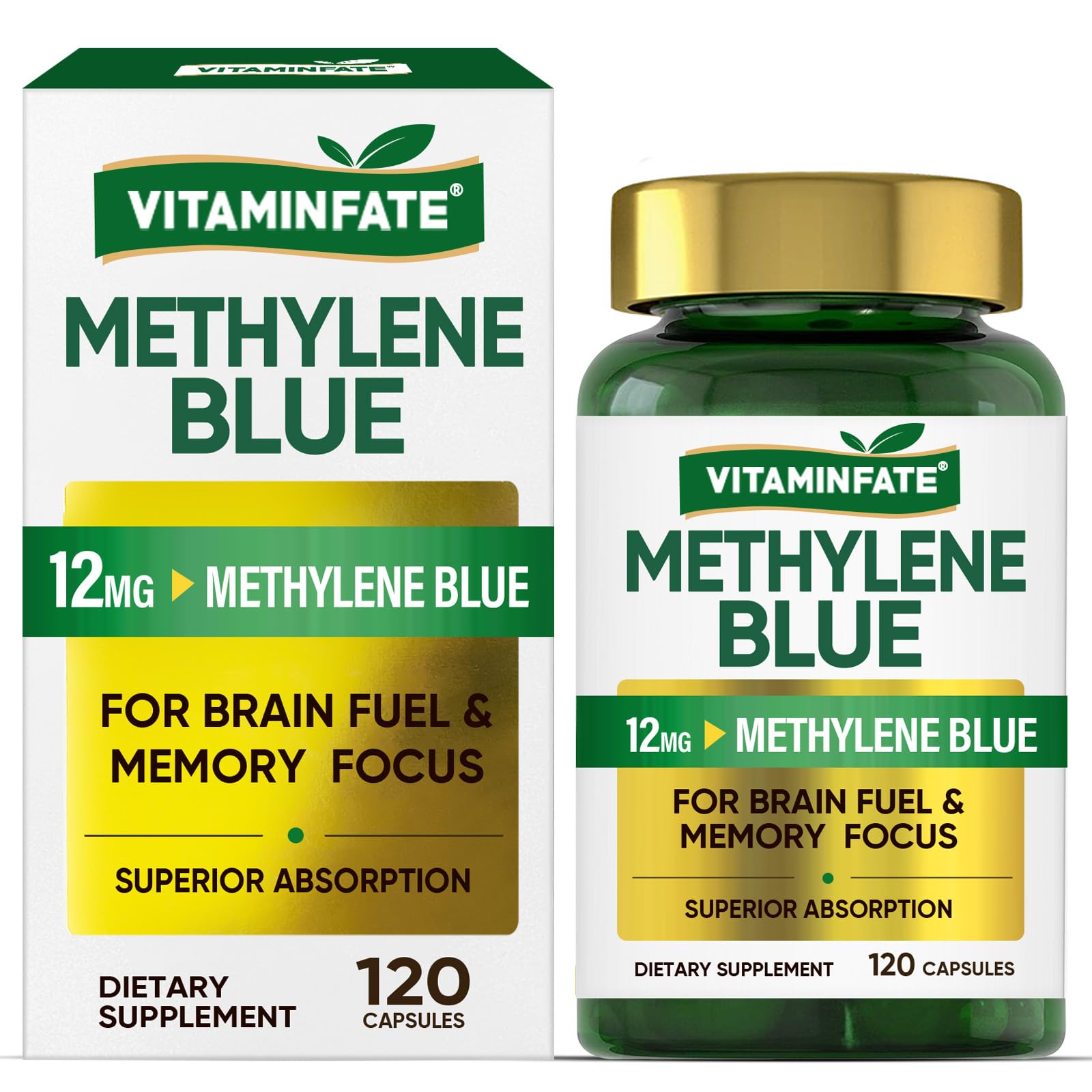 Methylene Blue Pharmaceutical Grade Supplement 120 Capsules (60-Day Supply) | USP Grade for Enhanced Absorption Supports Cognitive Function Memory Focus Energy & Brain Health
