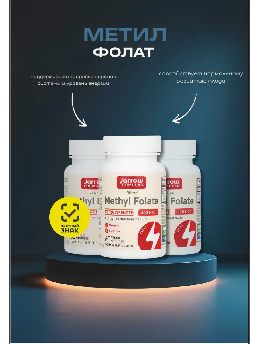 метилфолат, methyl folate, jarrow formulas, активная фолиевая кислота, витамин b9, quatrefolic, метафолин.