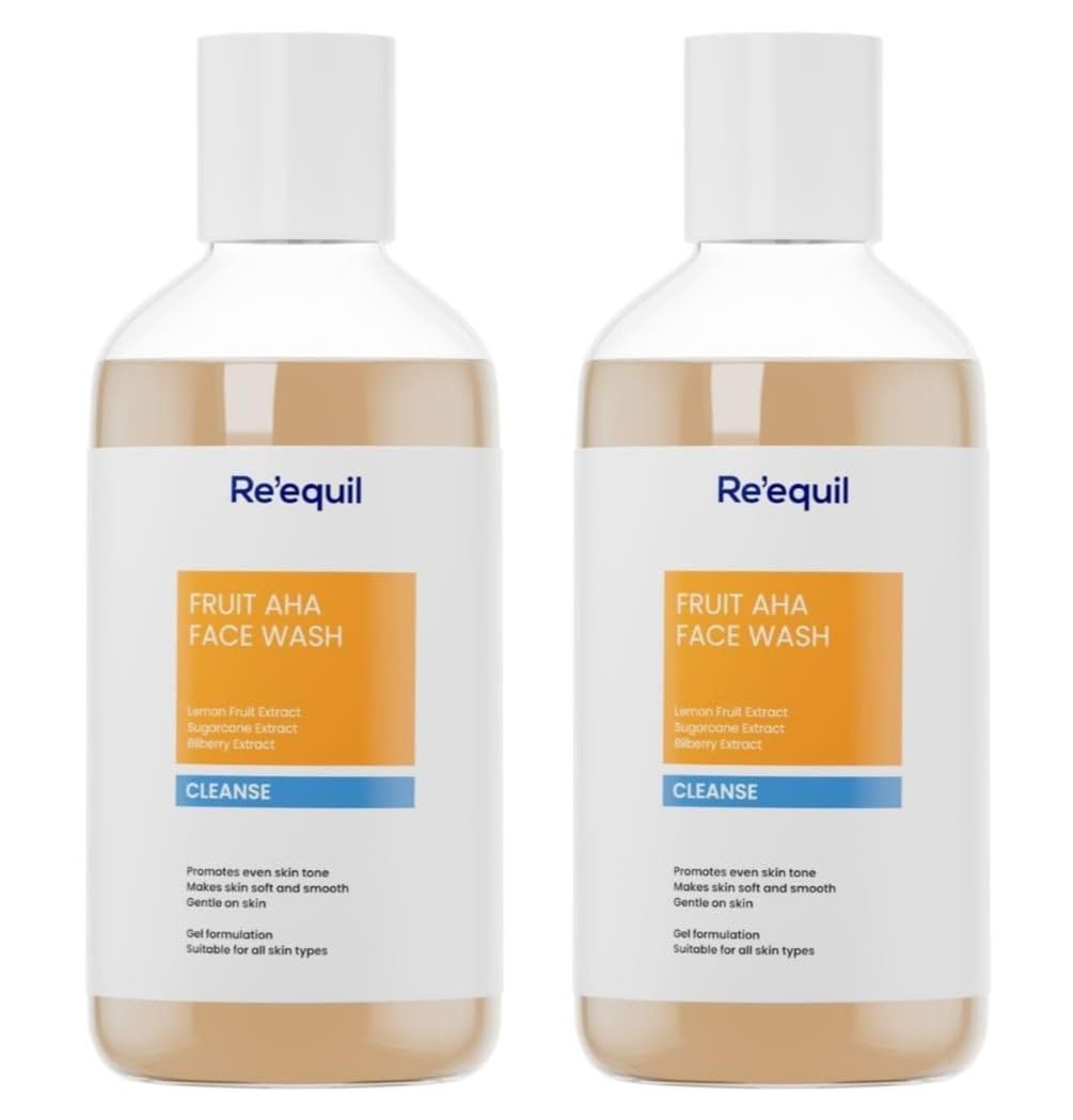 Transform your skincare routine with REQUIL's Fruit AHA Face Wash, a gentle yet effective cleanser designed for all skin types. This soap and sulphate-free formula works to reveal an even, brighter complexion while maintaining your skin's natural balance. The innovative blend helps make your skin noticeably softer and smoother with regular use. Coming in a convenient pack of two 200 ml bottles, this face wash offers great value while delivering a refreshing cleansing experience. The gentle formulation ensures your skin feels clean and refreshed without any harsh stripping or dryness. Perfect for daily use, this face wash helps maintain skin clarity while working towards a more radiant complexion. The easy-to-use packaging makes it ideal for your morning and evening skincare routines.