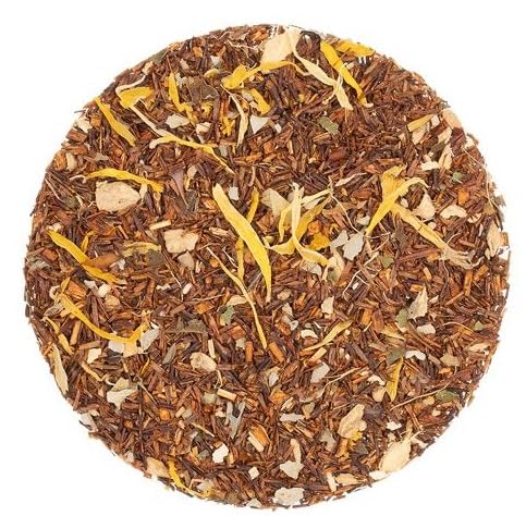 Refreshing early summer sweet peach tones with light ginger hints. Superb bright finish that makes your taste buds come alive.Shelf Life: 10 years unopened, 2 years after opening. Antioxidant Level: Low Caffeine Content: None - Caffeine Free Herb. Tea(s) From: South Africa Thailand Egypt France Region(s): Cederberg Petchabun Nile River Delta Fayoum Provence. Luxury Ingredients: Rooibos, Ginger, Blackberry leaves, Calendula petals, Natural flavors (Organic Compliant). Small Batch Blended and Packed in: Canada.