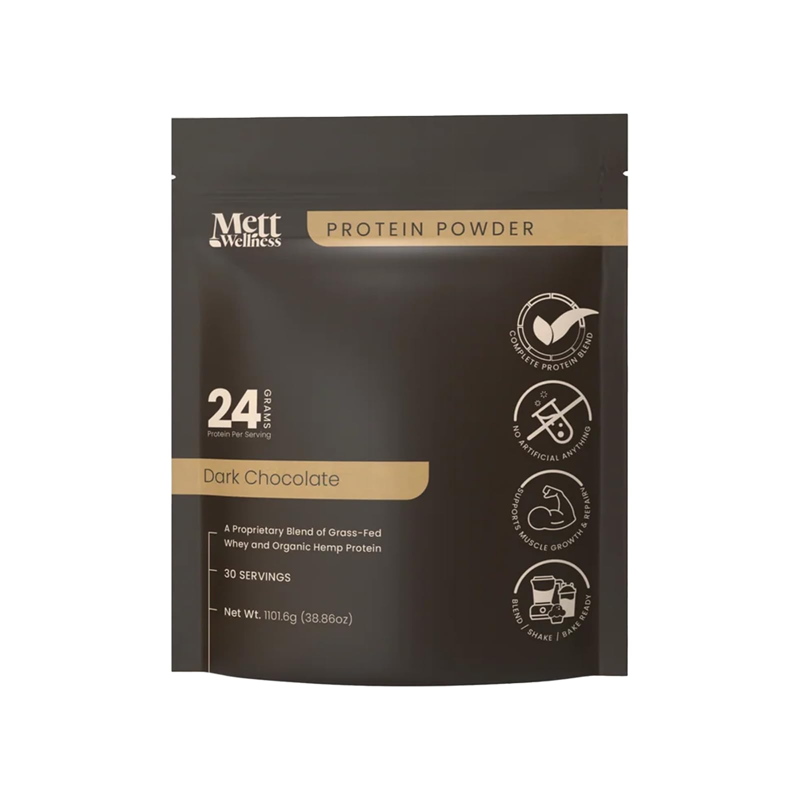 Mett Wellness Dark Chocolate Grass-Fed Whey + Hemp Heart Protein Powder with Bovine Collagen | 24g Protein per Serving | Supports Digestion & Daily Wellness | 2.4 lbs (30 Servings)