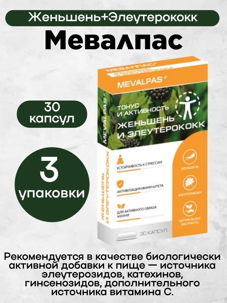Мевалпас Женьшень+Элеутерококк капс 30 шт/3уп