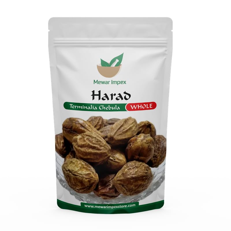Haritaki is known to toxins from the body and keeps the digestive system healthy. It is widely used in ayurved and treats a wide variety of health issues. An old shloka in Sanskrit that says "Yasya Mata Grihe Nasti Tasya Mata Haritaki" depicts the power of this seed.Harad Choti is one of the three musketeers that make up the strong rejuvenative Triphala mixture is this dried fruit, also known as Chebulic myrobalan. Due to its intense laxative, astringent, purgative, anti-bilious, and anti-oxidant qualities, the holistic science of Ayurveda strongly supports the usage of haritaki for treating a variety of health issues.Harad Choti - Haritaki - Terminalia Chebula Ayurvedic Properties Rasa : Madhura, Amla, Katu, Tikta, Kasaya, Guna :Laghu, Ruksa, Vipaka :Madhura, Virya :Usna, Karma :Caksusya, Dipana, Hrdya, Medhya, Sarvadosaprasamana, Rasayana, Anulomana.Helps in maintaining a healthy digestion Believed to be good in Cold and Cough Encourages hair growth It is beneficial in the constipation. Hair loss can be led using this product.