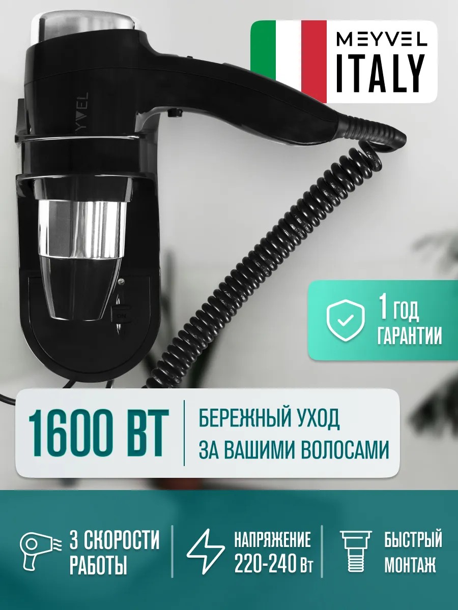 | Комплектация | Настенный фен для волос с держателем - 1 шт.; Инструкция - 1 шт. |
