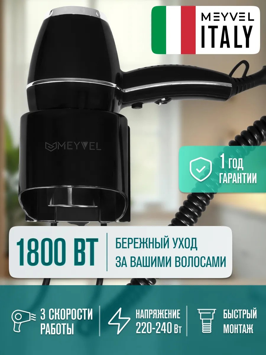 Фен настенный для волос с держателем MF7-1800 (Black)