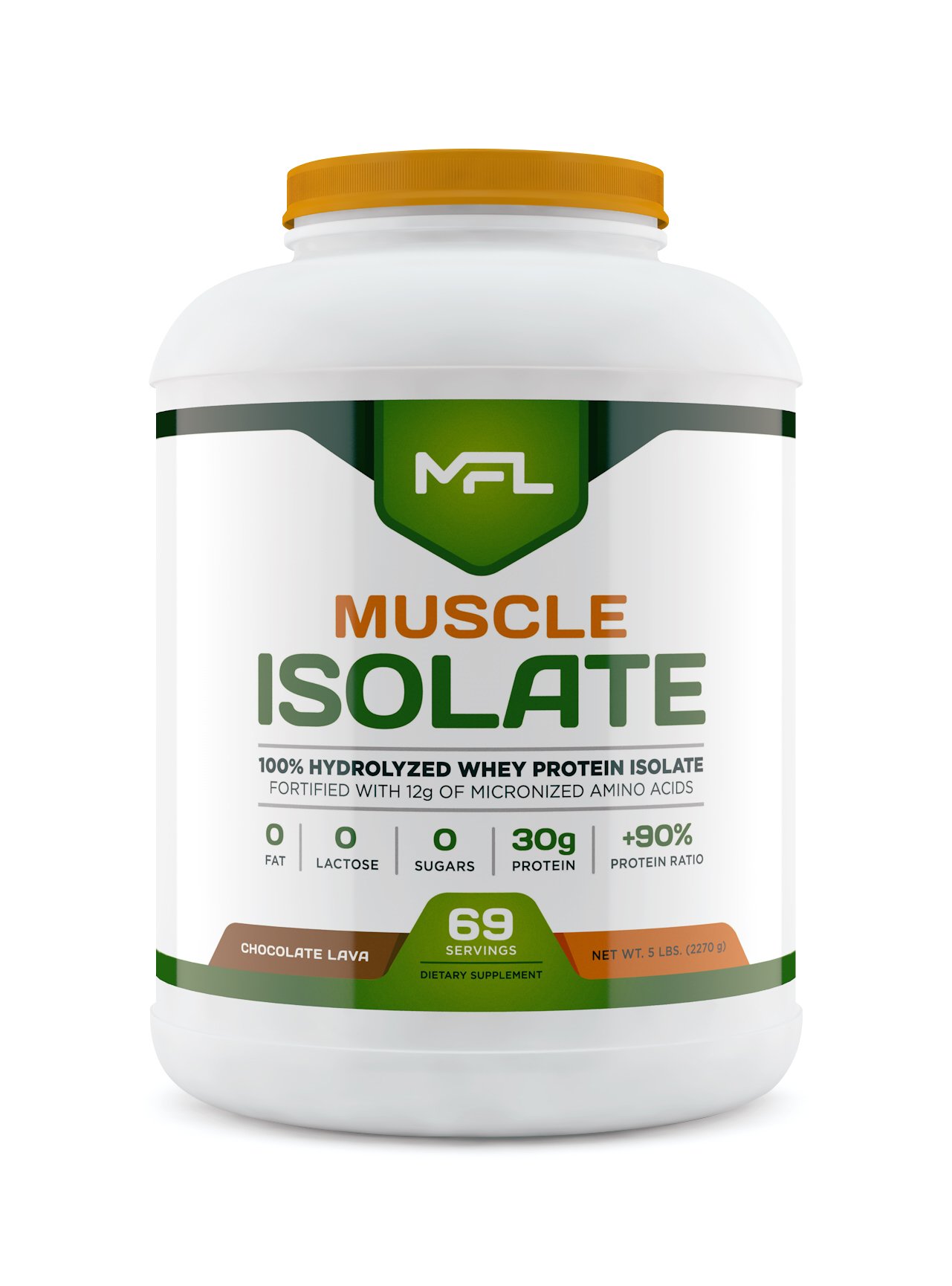 MUSCLE ISOLATE is a high-quality, hydrolyzed whey protein isolates formula packed with 30 grams of protein per serving and enhanced with 12 grams of micronized amino acids. MFL's 100 whey protein isolate is the ideal go-to protein for any nutrition or exercise regimen because it is designed to suit a variety of active lifestyles and diet plans, including the KETO DIET. It is Low-Carb, NO sugar, Lactose and Gluten Free, loaded with vitamins, minerals and nutrients to keep you going strong. It is available in a variety of delicious flavors to mix up some seriously delicious smoothies or add it to your favorite foods such as yogurt, cereal, oatmeal or use it in baking muffins, pancakes, etc., to get more protein into your daily diet.