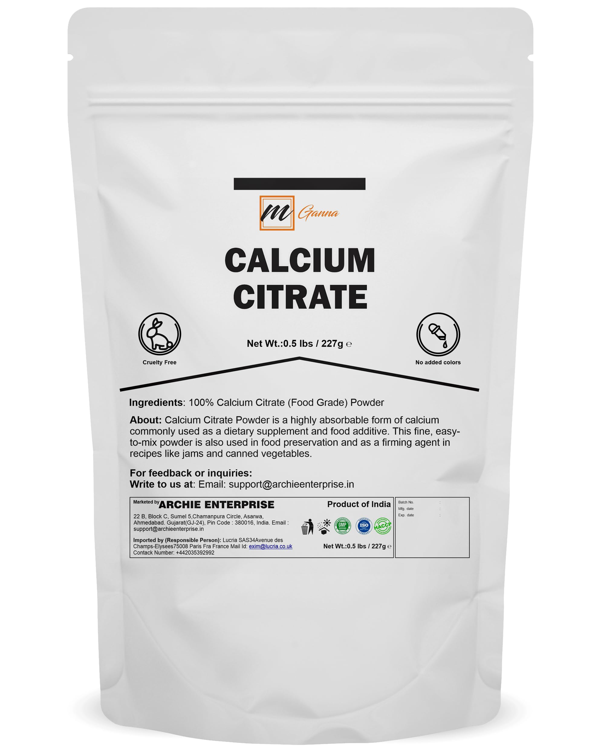 mGanna 100% Calcium Citrate Powder (Food Grade) Versatile Highly Absorbable Calcium Source 0.5 lbs/ 227 g
