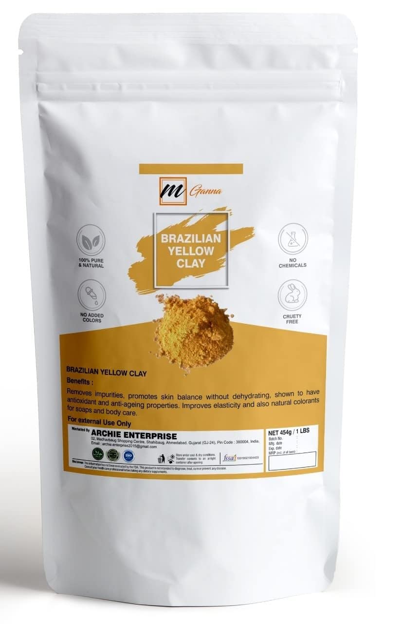 mGanna 100% Natural Brazilian Yellow Clay Powder 0.22 lbs/ 100 g for Anti-Ageing & Skin firming Creams and Soap Making