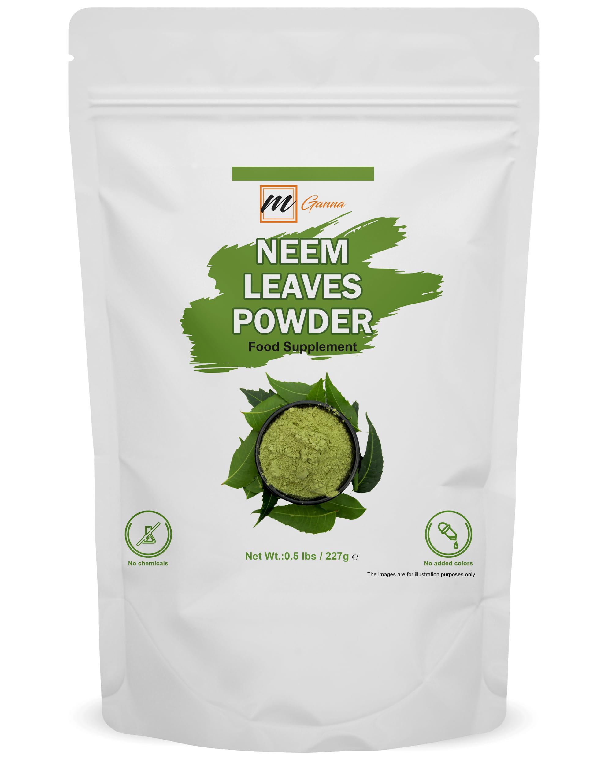 mGanna 100% Natural Neem Leaf Powder Pure Azadirachta Indica for Skin, Hair Care and Cosmetic Formulations 227 GMS / 0.5 LBS
