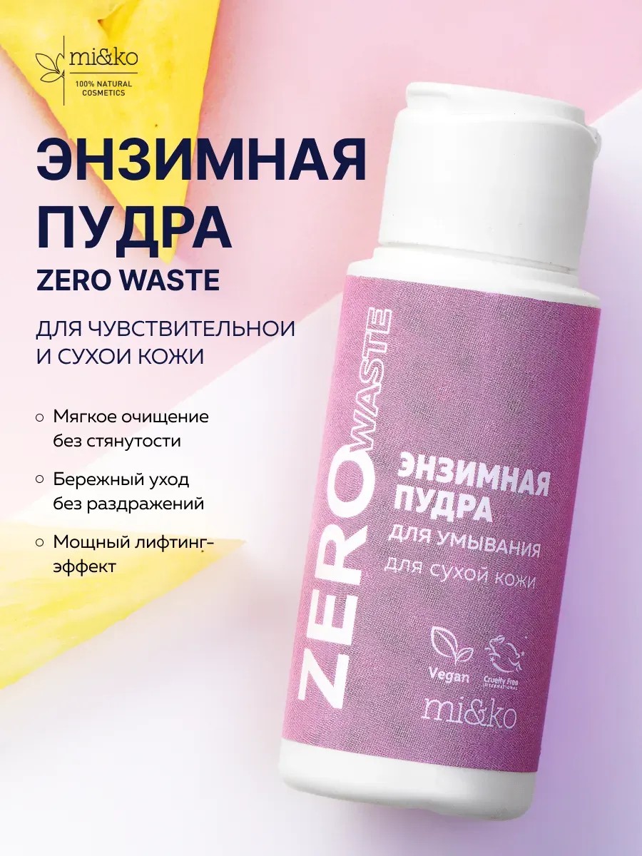 Умывание энзимной пудрой может быть мягким и бережным, если это пудра Zero Waste специально для сухой кожи! В фокусе средства — тщательное, но абсолютно не травматичное очищение, деликатный пилинг и активное обновление изнутри. Результат — меньше морщин и обезвоженности, больше здорового сияния и мощный лифтинг-эффект!