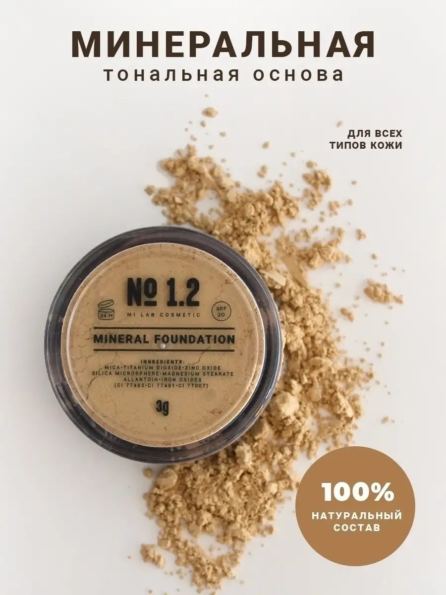MI LAB is a Russian manufacturer of mineral decorative cosmetics. Medium shade No. 1.2 is for slightly darker than light skin tones, and for medium-tanned skin.