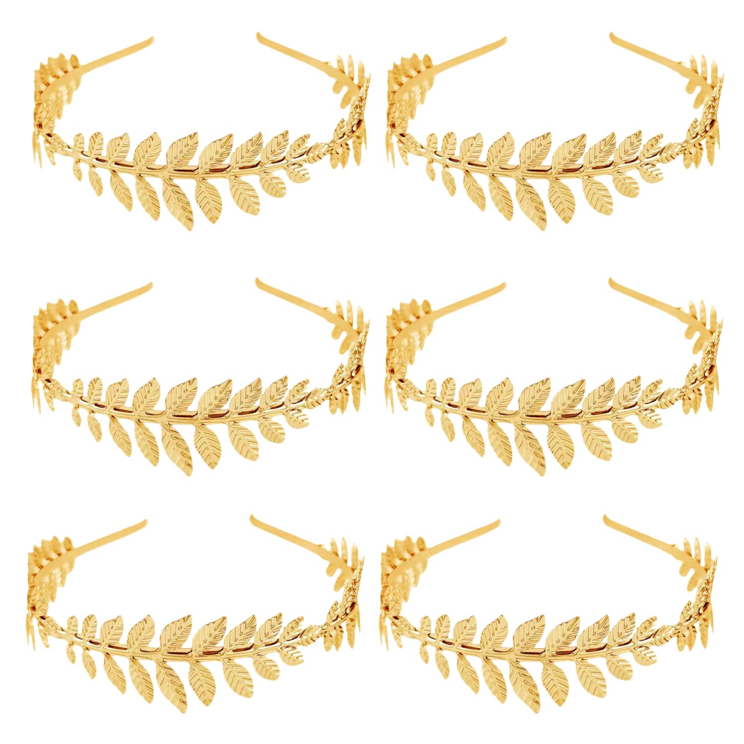 Miaija 6Pieces Gold Leaf Headband Greek Goddess Headpiece Band Crown of Leaves Christmas Party Photo Prop for Halloween Girls Women Hair Accessories