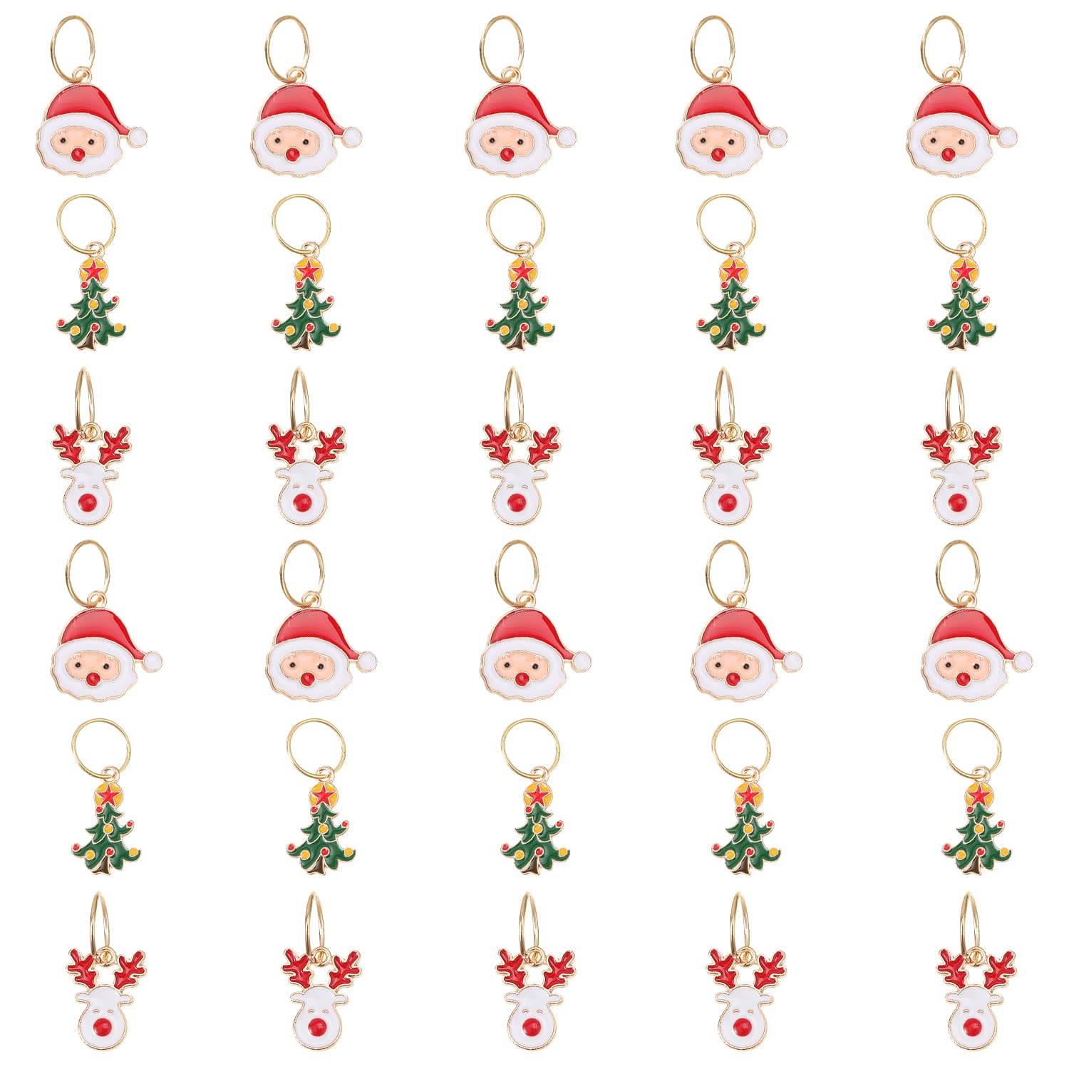 Miaija Christmas Hair Braid Rings Pendants Xmas Hair Braid Ring Xmas Shape DIY Hair Braiding Jewelry for Gift Women Girl Long Hair Accessories (30)