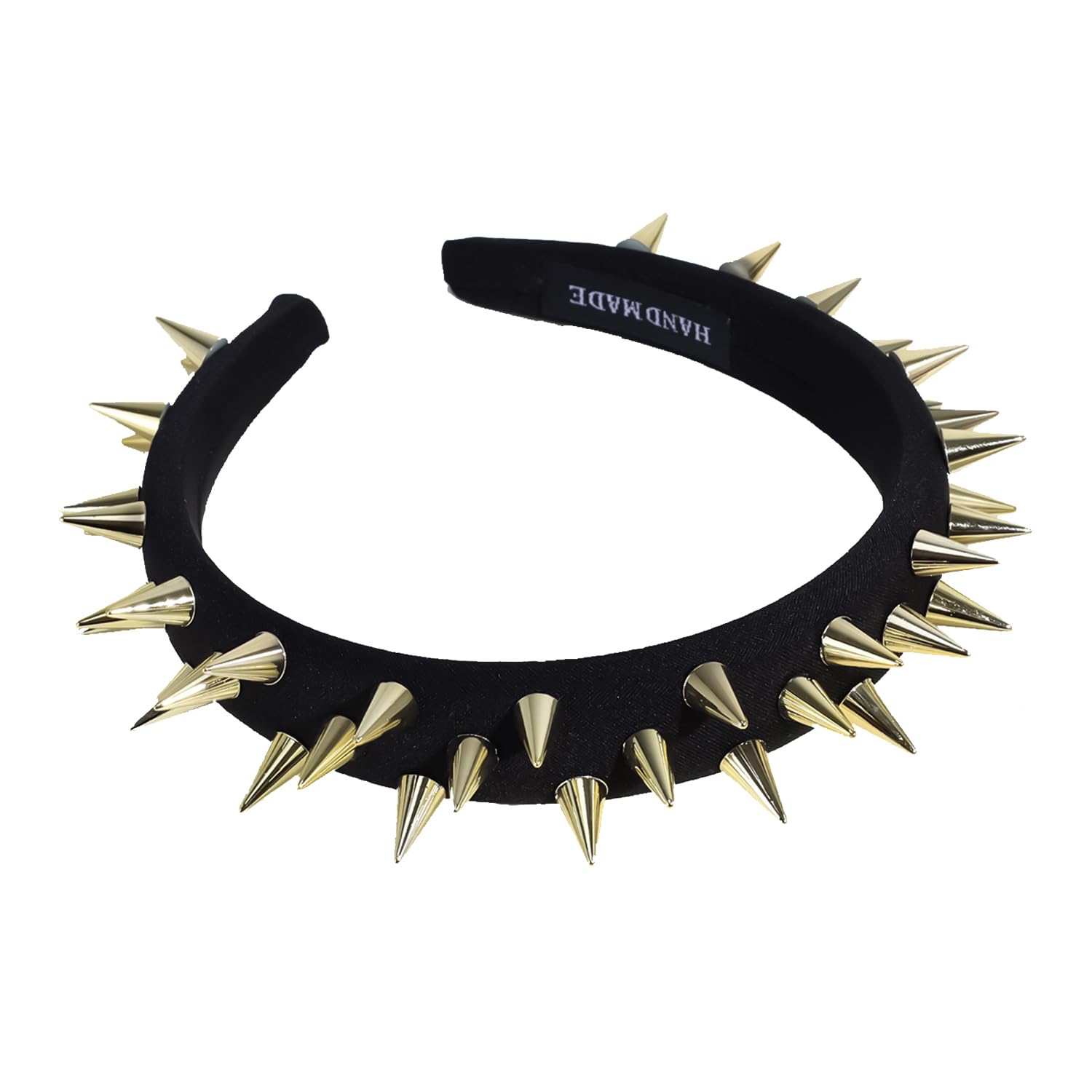Miaija Studded Headband Punk Style Rivet Headband Spike Headband Hair Hoop Wicked Queen Headpiece for Women (Gold)
