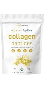 Premium non-GMO ingredients, made without soy, dairy, gluten, and tree nuts. Each batch goes through 3rd party lab tests to ensure a product that is safe, pure, and potent. Each pouch includes a scoop inside to get the perfect measurement, a 12oz supply, and 34 total servings of raw bovine collagen powder. Feel young again and maintain that healthy youthful vigor with Micro Ingredients beauty collagen, a health and household staple for both men and women. A powerful unflavored easy-to-mix organic bovine collagen supplement, add it to any of your favorite drinks like coffee, tea, or smoothies and replenish your body with top grade collagen. Micro Ingredients offers 12oz of organic bovine collagen peptide powder, 10g of grass-fed collagen per serving, created with a premium PeptPure hydrolyzed formula for efficient absorption that supports joint, muscle, hair, skin, and nail health.