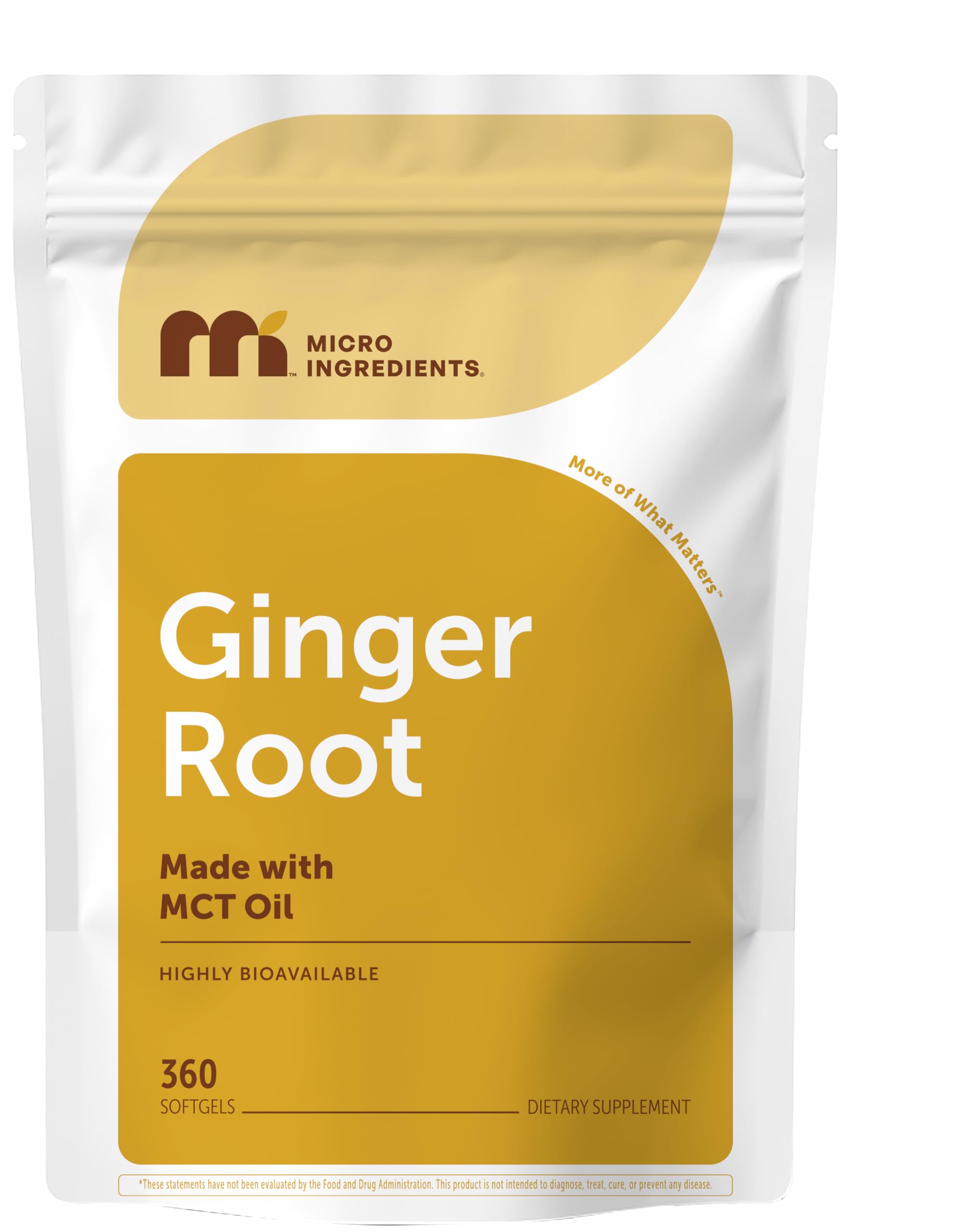 Micro Ingredients Ginger Root with MCT Oil 360 Softgels | Fresh Ginger Root Extract | Herbal Supplements for Women & Men | Non-GMO Gluten Free Soy Free
