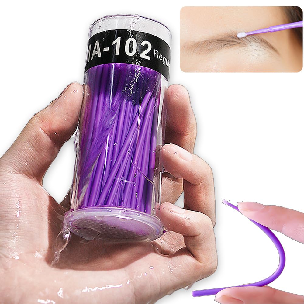 Micro Swabs 100pcs Microswabs for Eyelash Extensions Disposable Micro Applicator Brush for Make up and Clean and Compatible and Personal Care Purple Micro Brush(Carrying Case) (A-Purple)